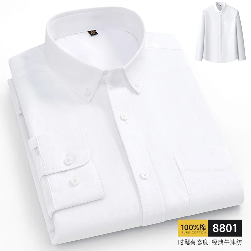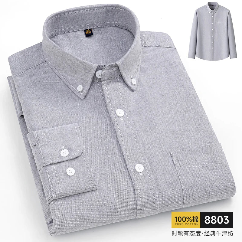 A refined long sleeve shirt designed for smart casual and business wear.Made from pure cotton Oxford fabric with a clean solid finish.