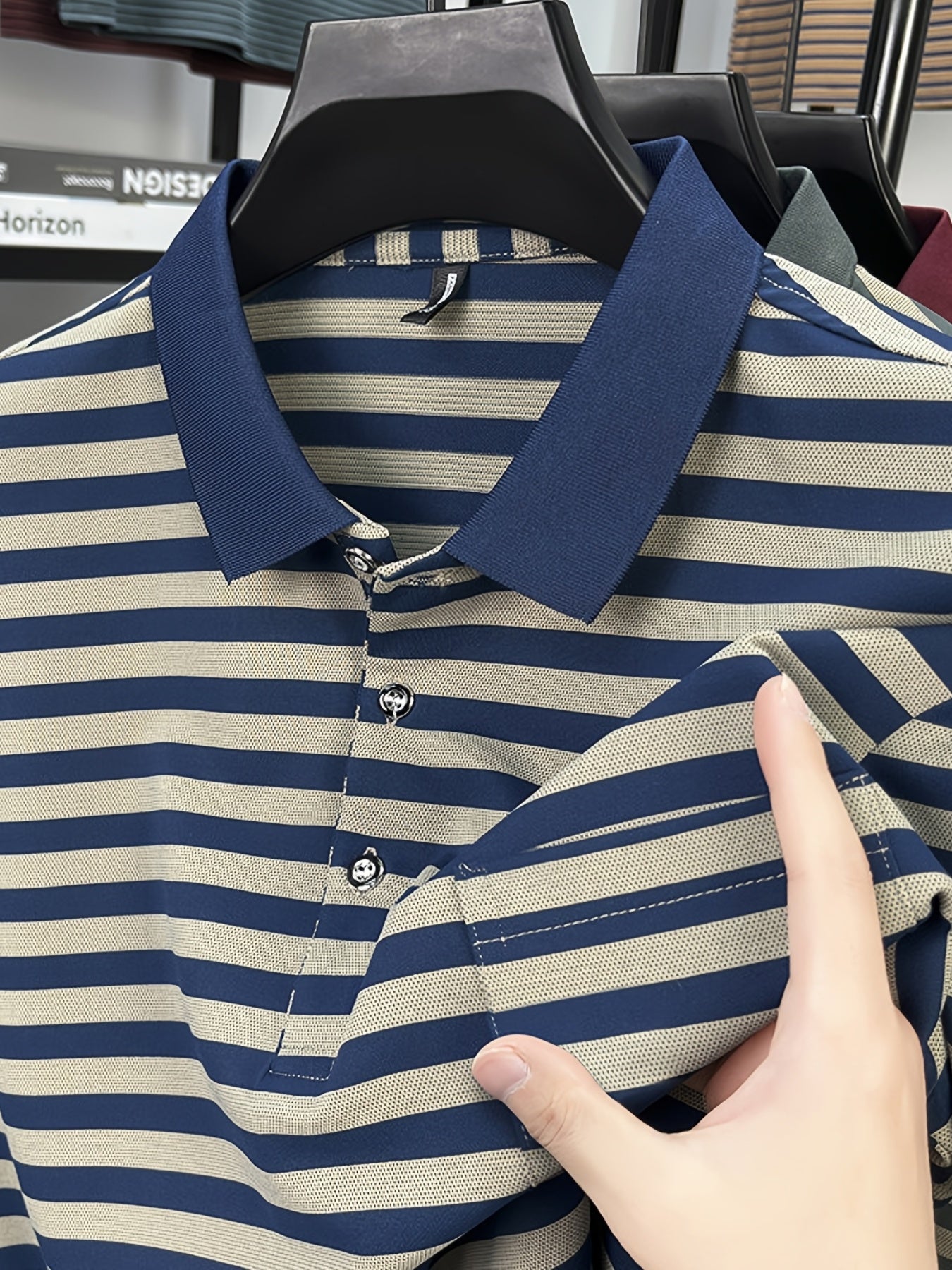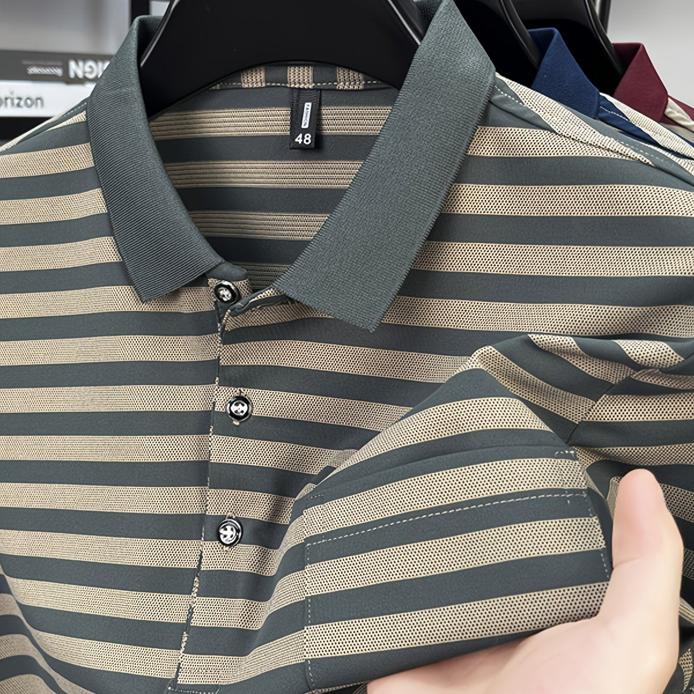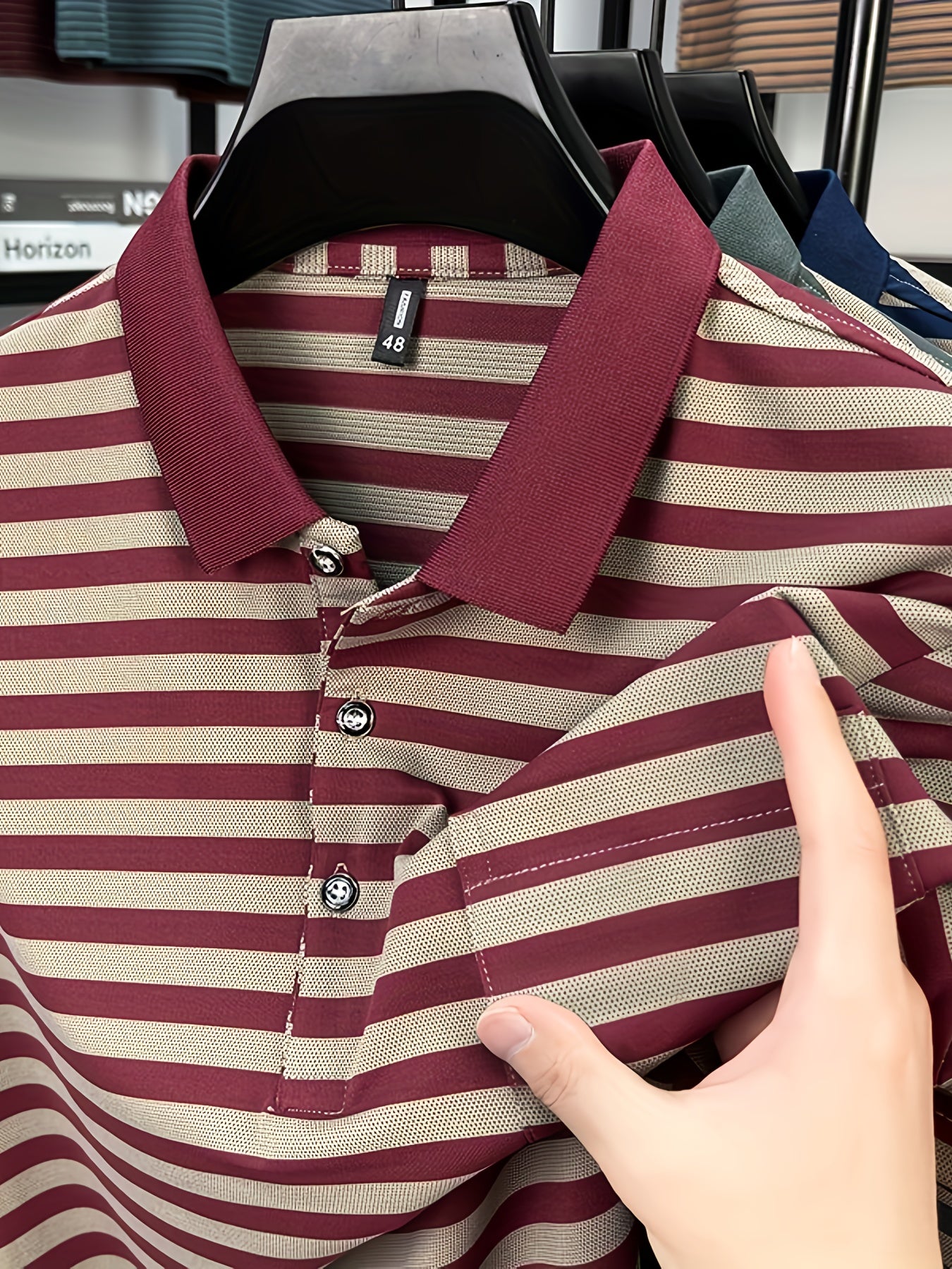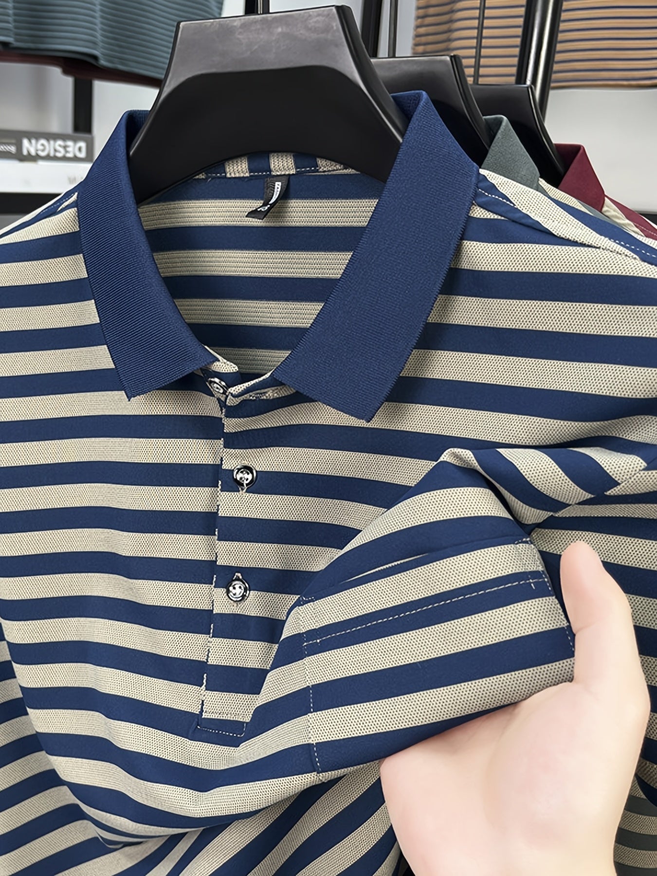 A relaxed polo designed for casual summer wear.Regular fit with light stretch fabric for everyday comfort.Finished with a striped pattern and practical pocket detail.