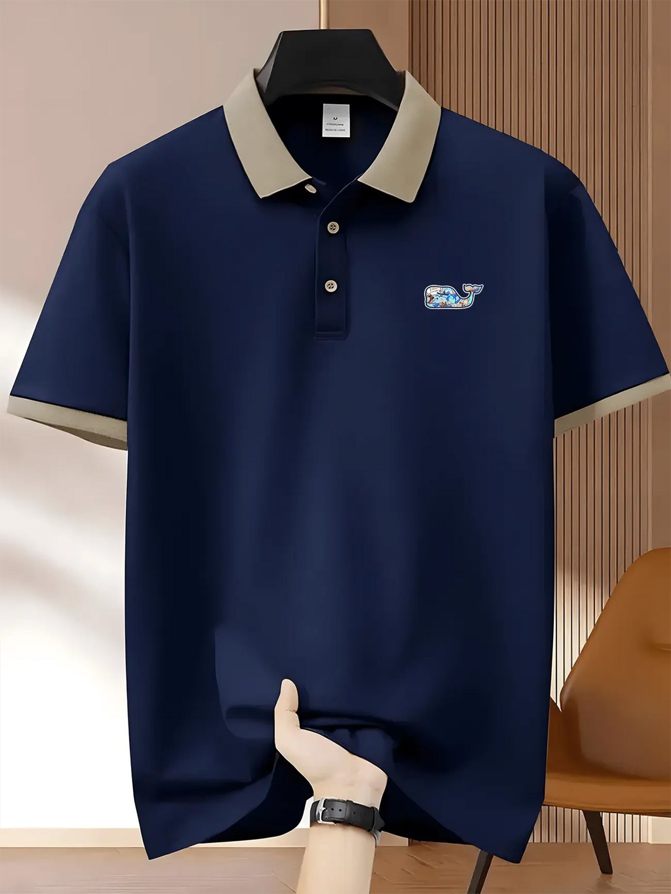 A casual polo designed for light sport and everyday wear.Regular fit with soft knit texture and slight stretch for comfort.Finished with a printed whale pattern and classic button collar.