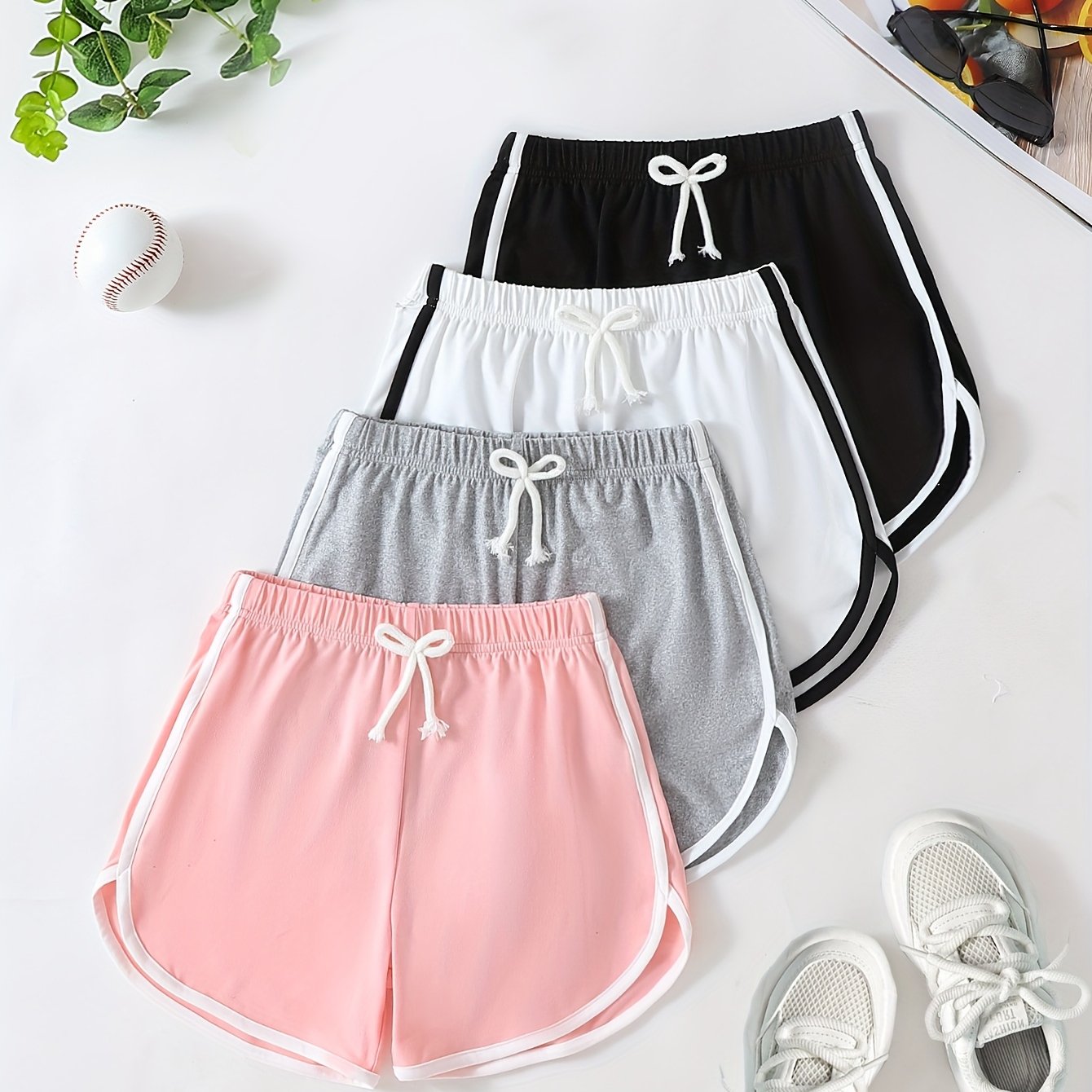 A casual athletic shorts set designed for girls with a relaxed, comfortable fit. Crafted from soft knit fabric with light stretch for easy movement. Ideal for spring and summer daily wear.