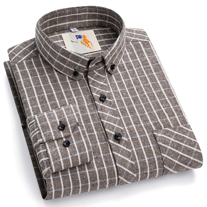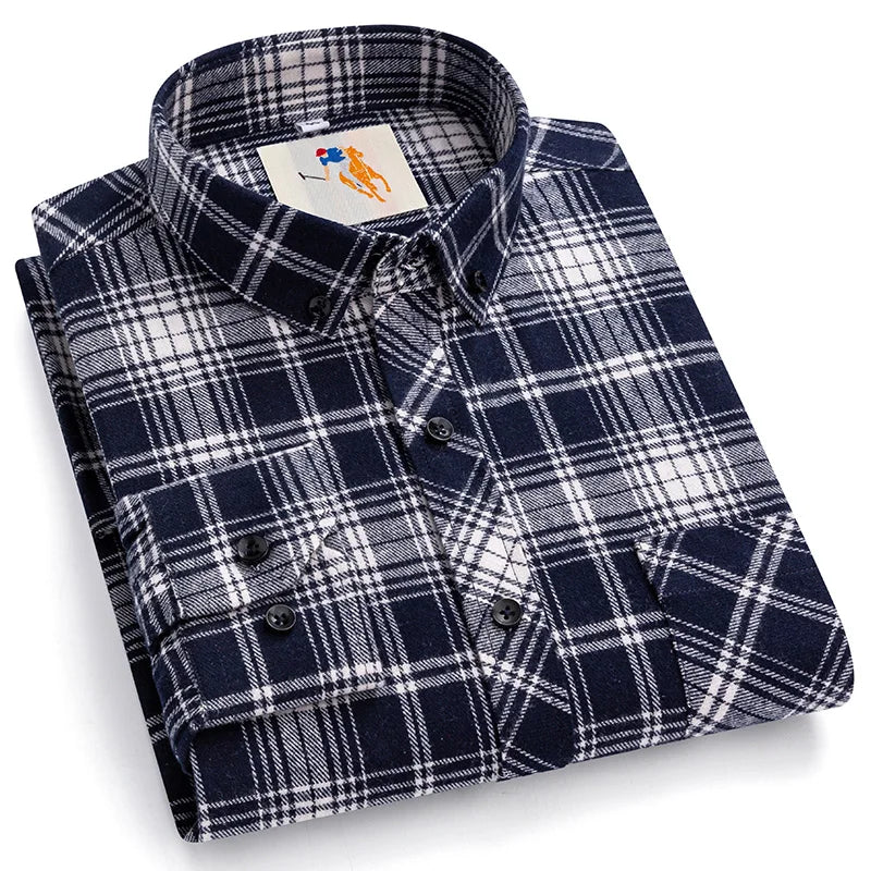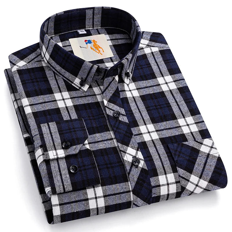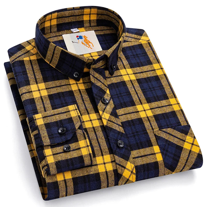 A timeless plaid shirt designed for daily wear in spring and autumn.Soft cotton construction with a structured full sleeve fit.