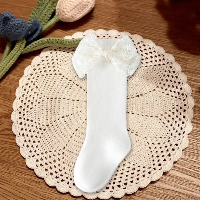 • Knee-high sock length design• Lace bow decorative detail• Non-slip grip sole for safety• Soft polyester comfort fabric• True to size gentle fit• Suitable for daily baby wear
