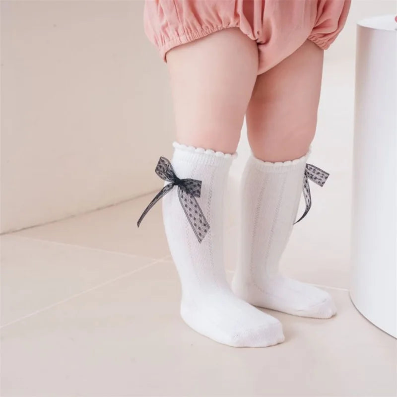 • Lace ruffle princess-style design• Bowknot decorative detail• Soft cotton-blend comfort• Mid-calf sock height• Gentle and breathable feel• Suitable for year-round use