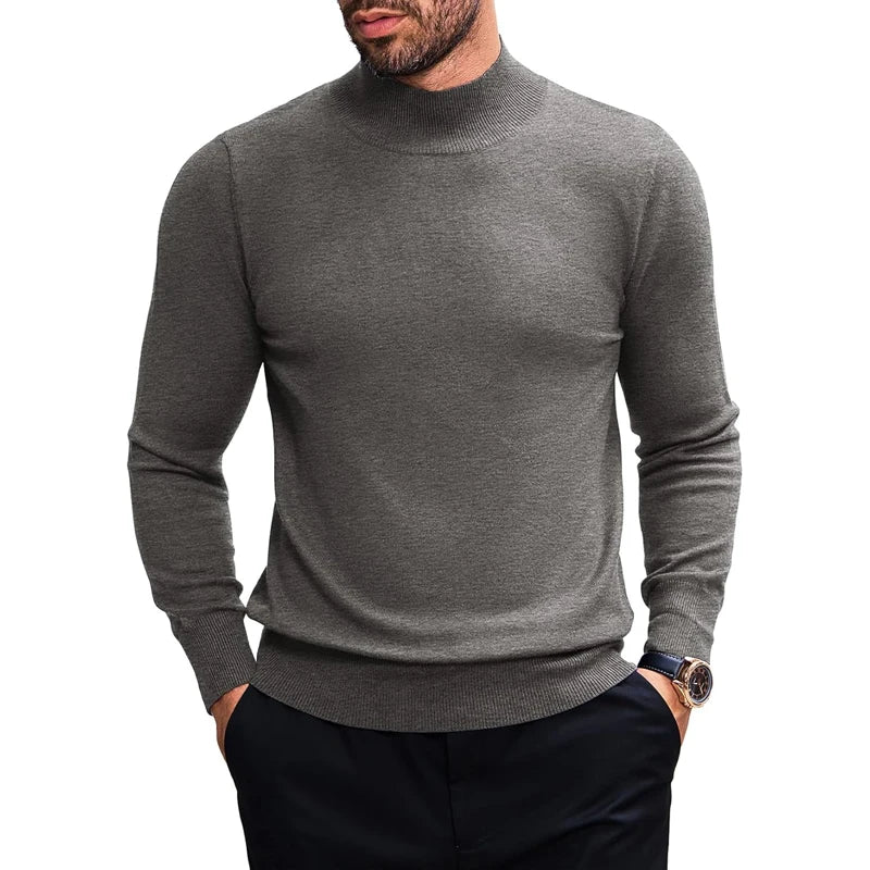 Designed for casual wear during autumn and winter.This elastic knit pullover features a refined stand collar with a classic shape.A thick wool-blend essential suited for work and everyday styling.