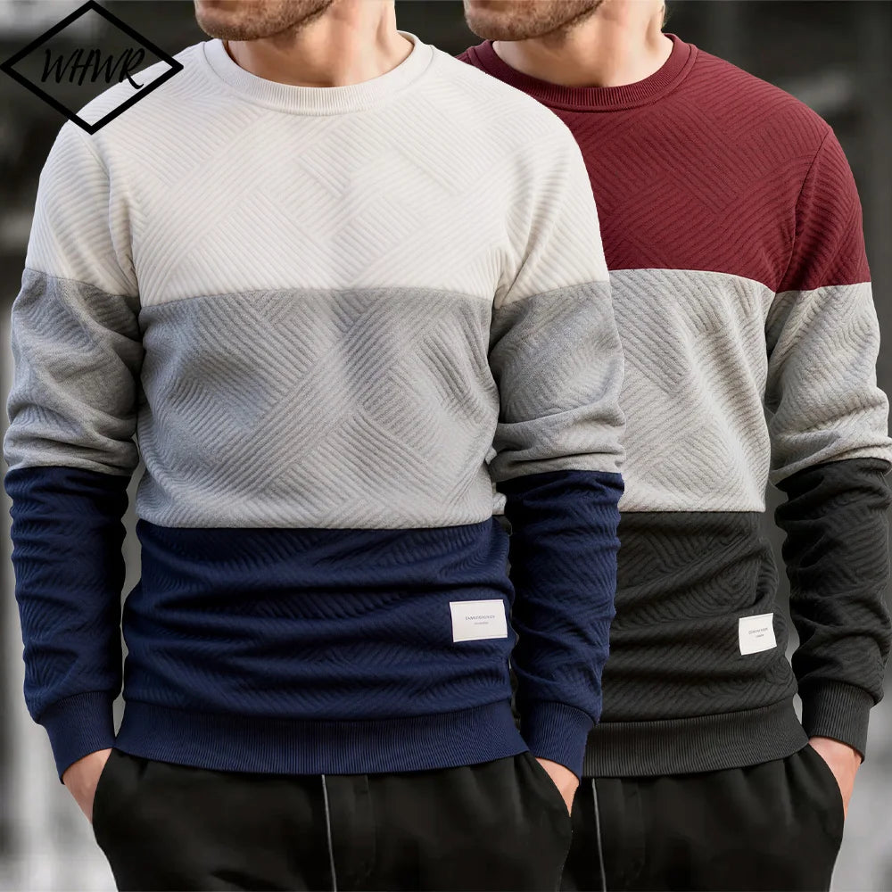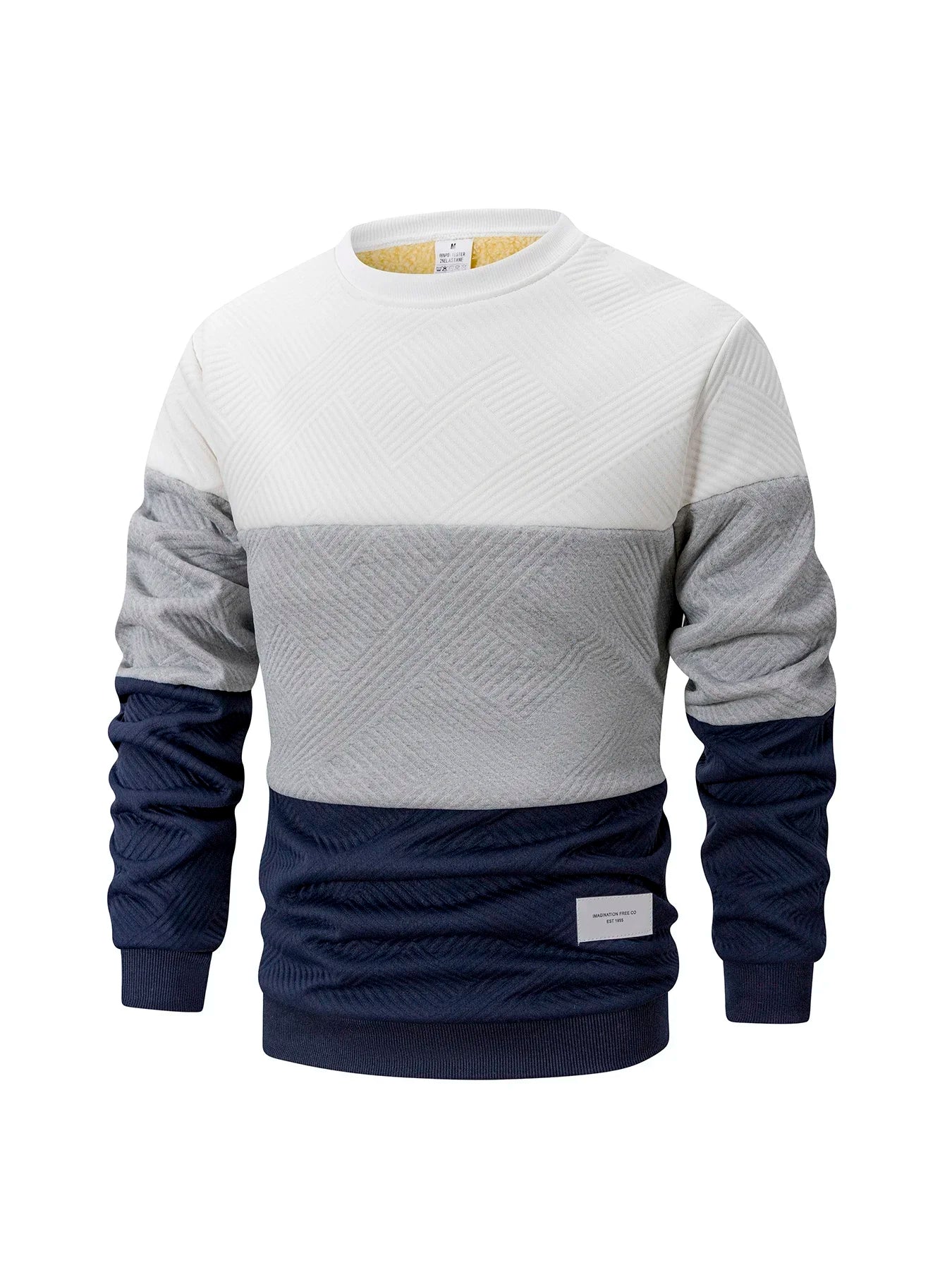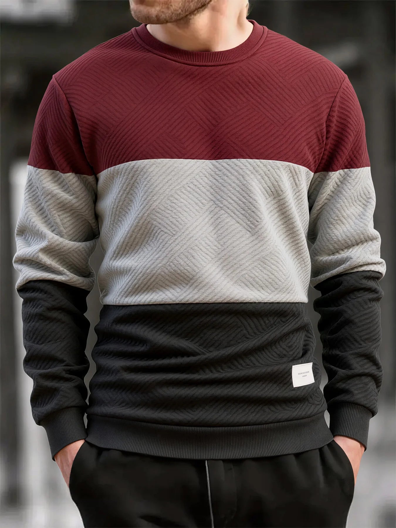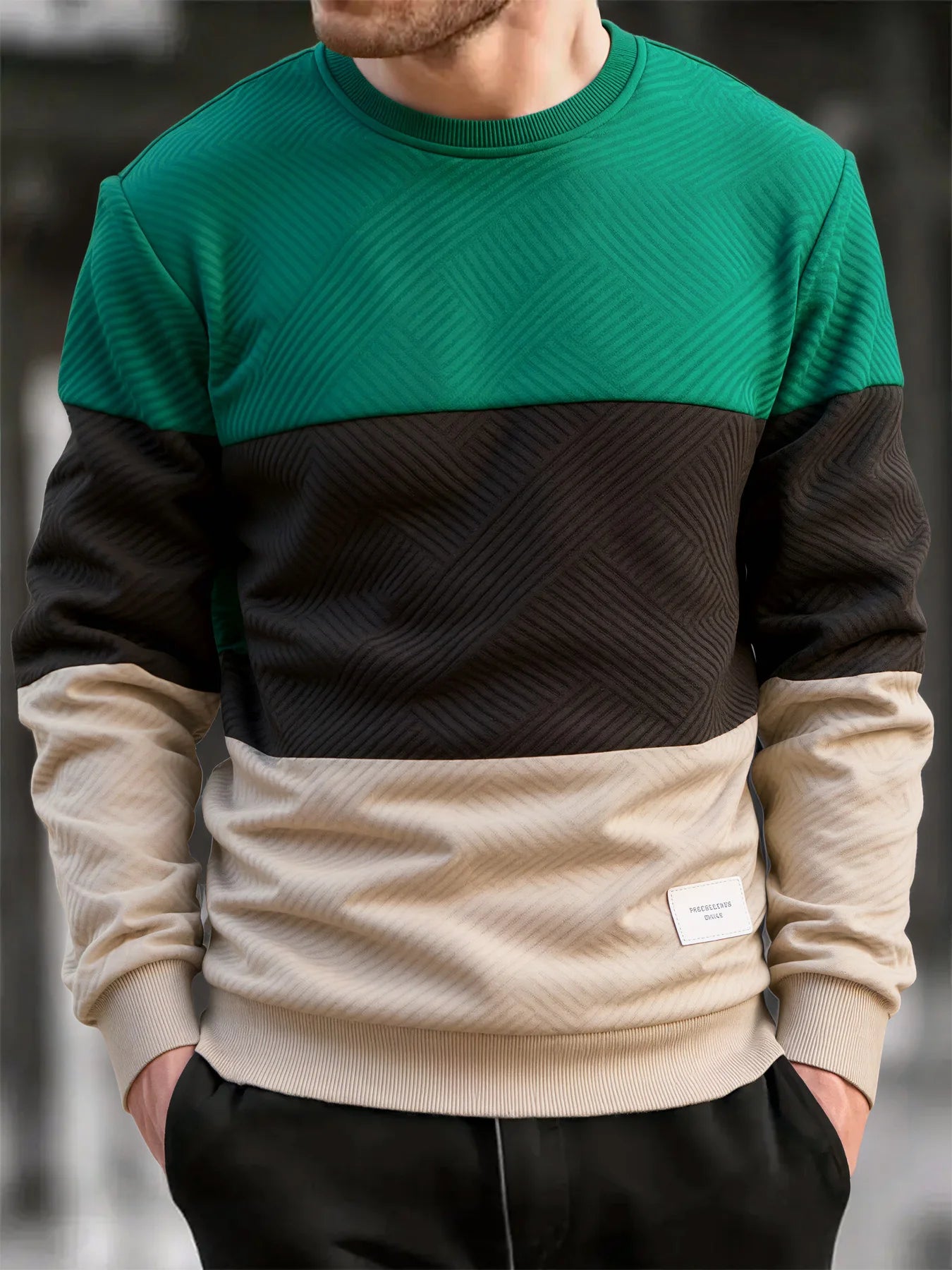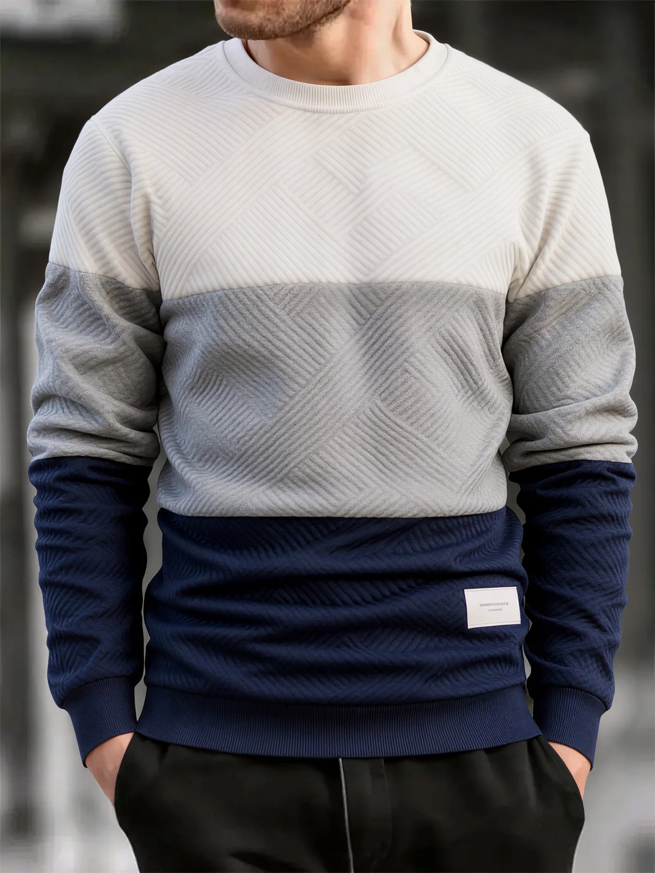 Crafted for daily wear during autumn and winter.This slim-fit crew neck pullover features a warm thick knit construction.A clean streetwear essential with subtle patchwork detailing.