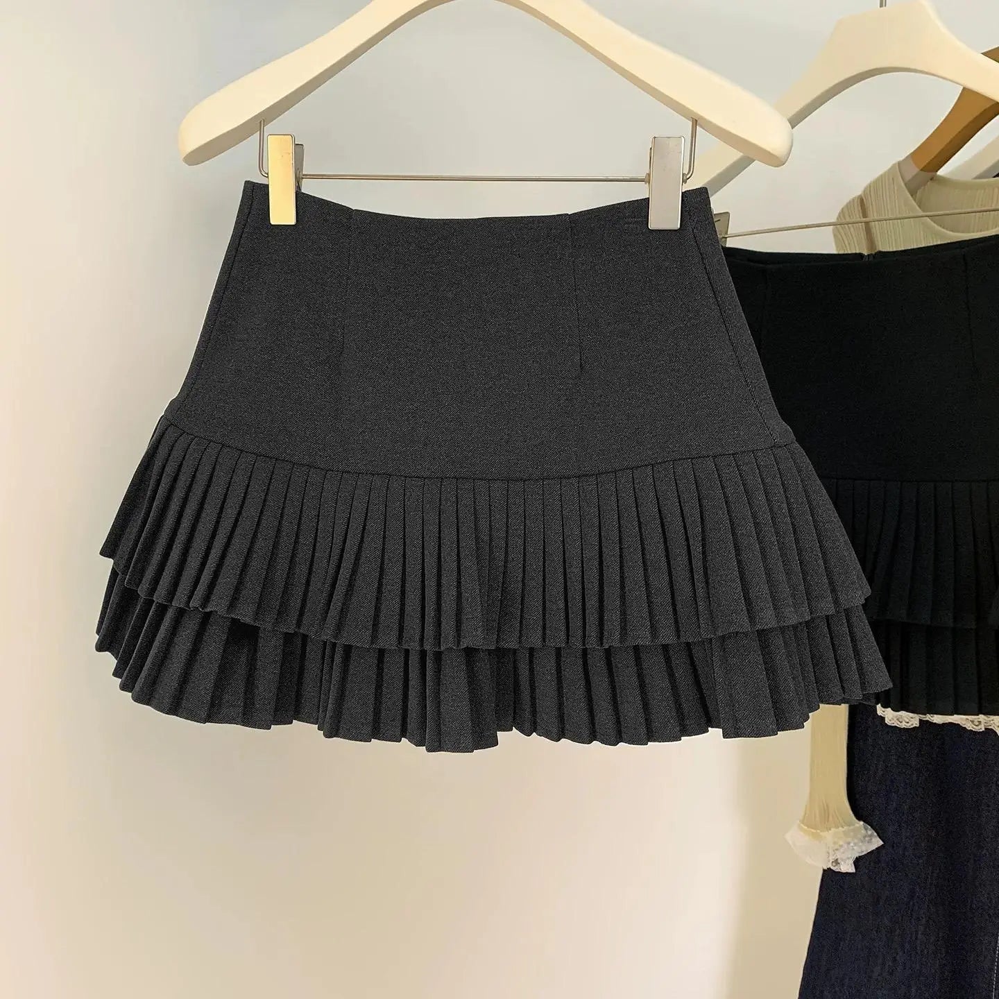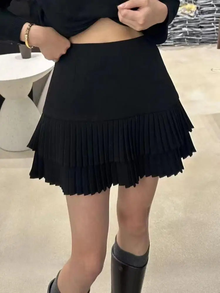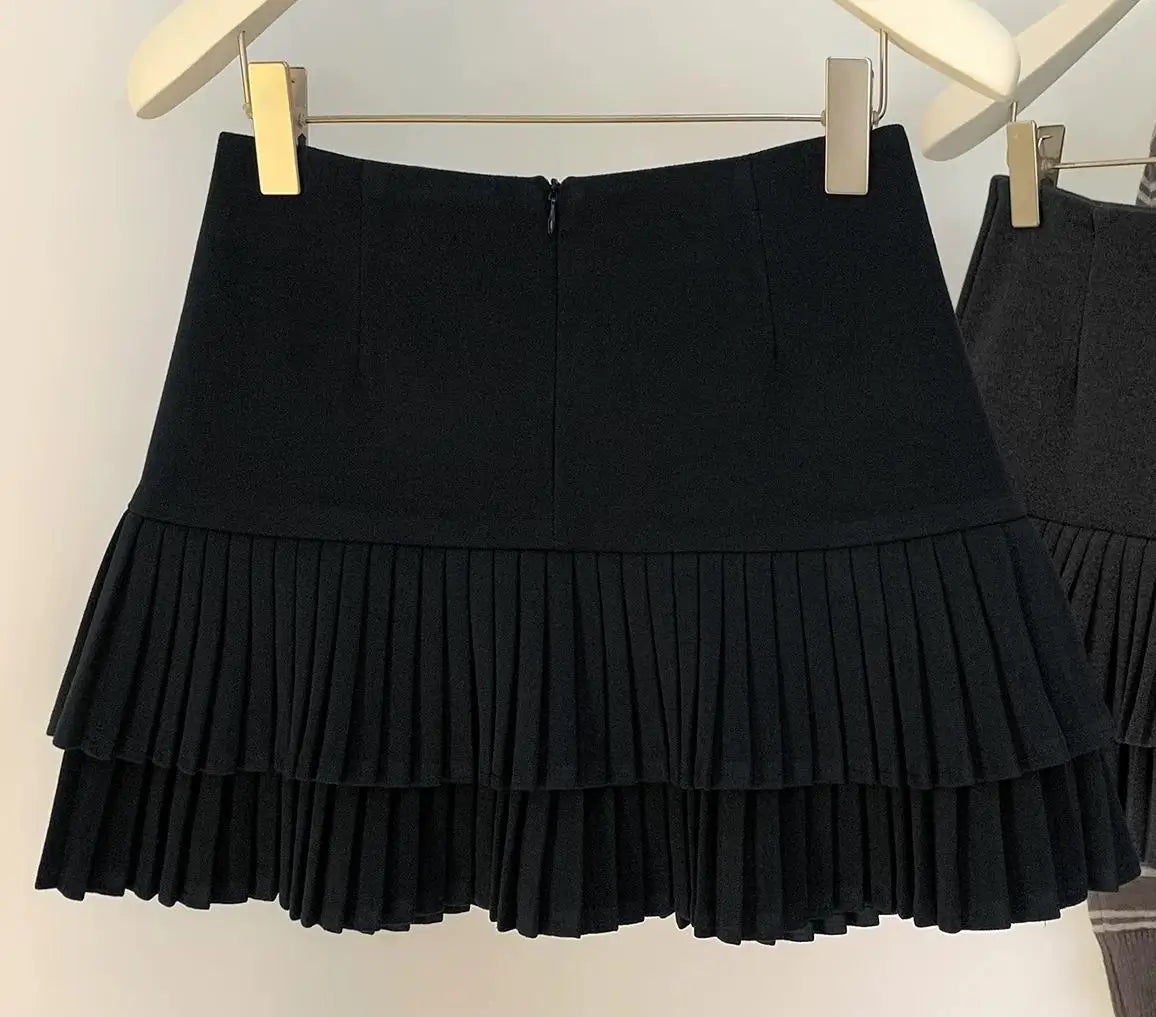 A chic mini skirt designed for autumn and winter styling.Slim fit with a flattering A-line shape and vintage appeal.