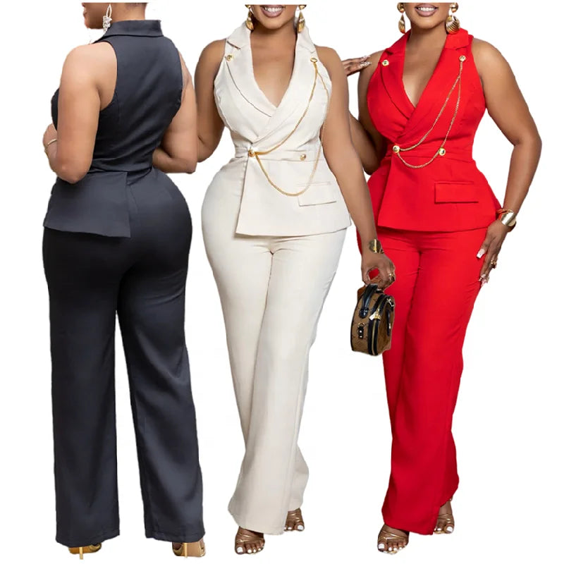 Designed for bold summer daily styling. This sleeveless jumpsuit features a flattering V-neck with a structured high-waist silhouette. Perfect for casual occasions with statement appeal.