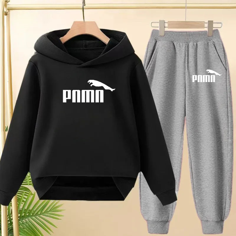 A cozy pullover hoodie and trousers set made for autumn comfort. Designed in a true-to-size regular fit for active daily wear. Casual cartoon style makes it perfect for school and outdoor play.