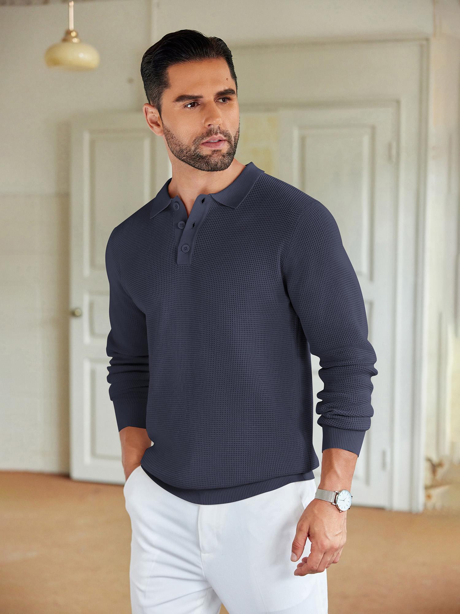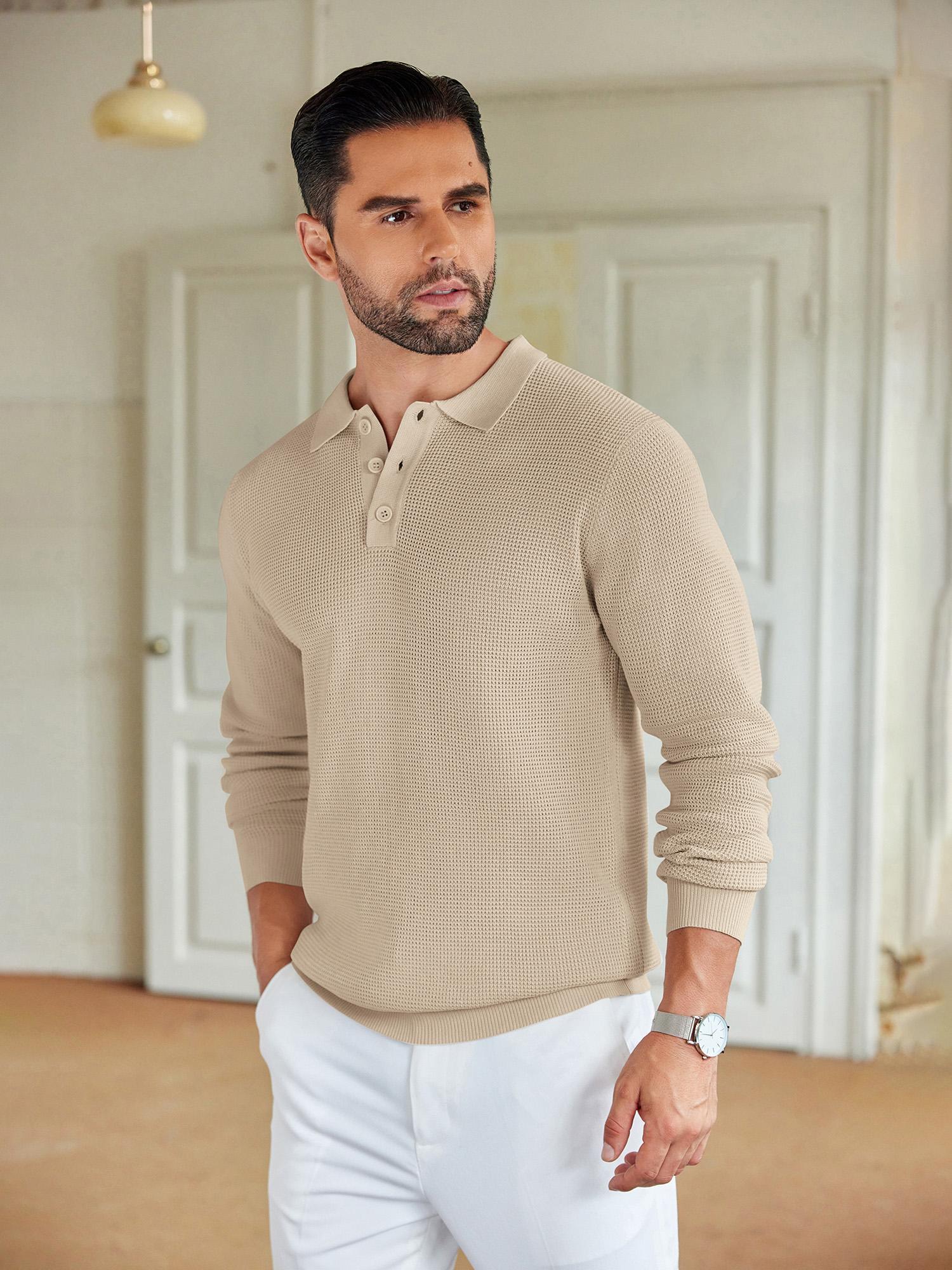 A lightweight polo designed for relaxed everyday wear.Regular fit with soft knit texture for spring and fall comfort.Clean solid styling keeps the look simple and versatile.
