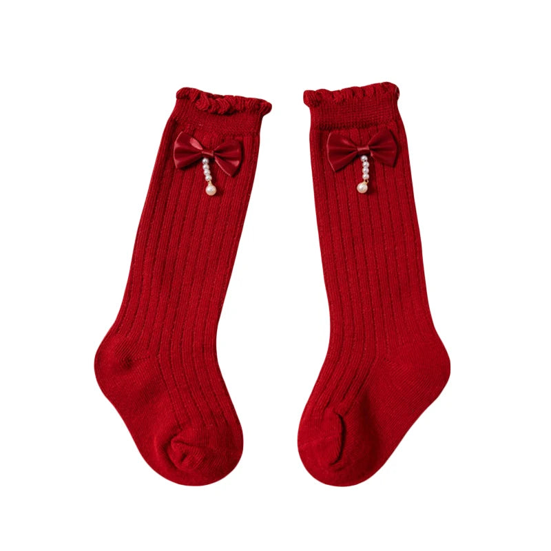 • Knee-high ribbed sock design• Sparkly bow and pearl detailing• Soft cotton-blend comfort• Non-slip sole for safety• Gentle fit for babies• Suitable for winter daily wear