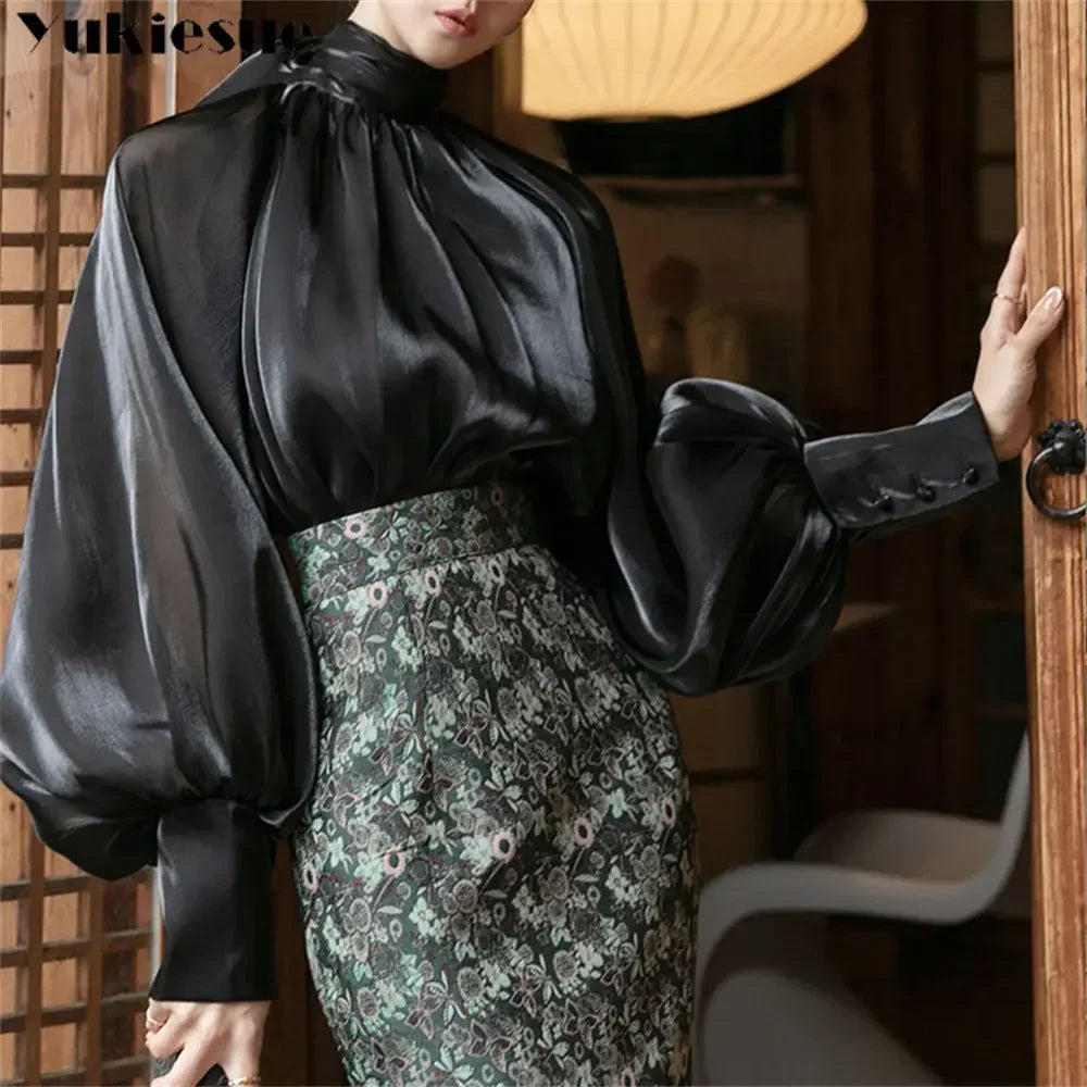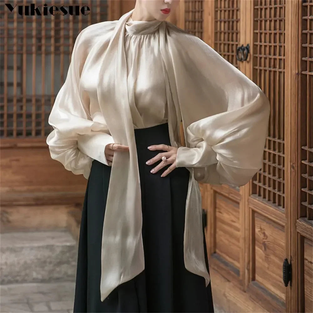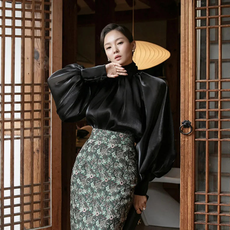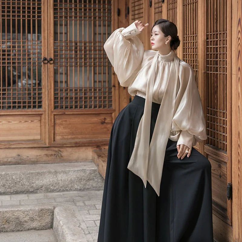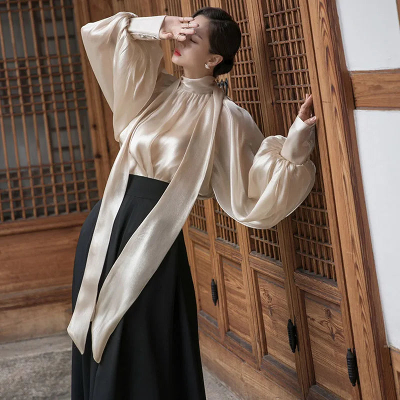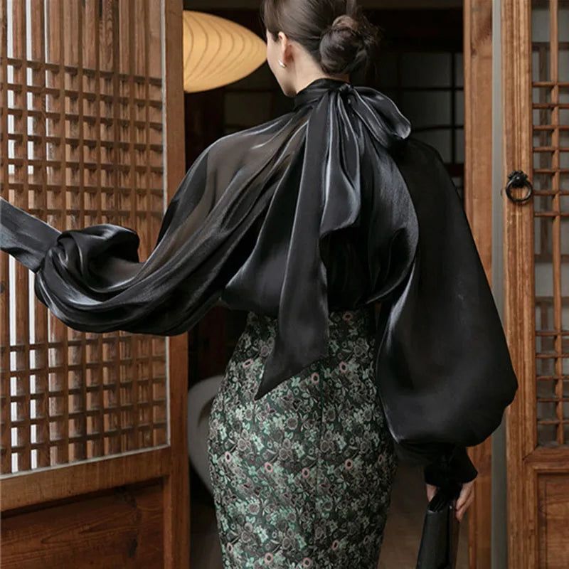A slim-fit blouse designed for refined everyday wear.Lightweight chiffon fabric creates a soft, flowing look.Loose structure balances elegance with comfort.