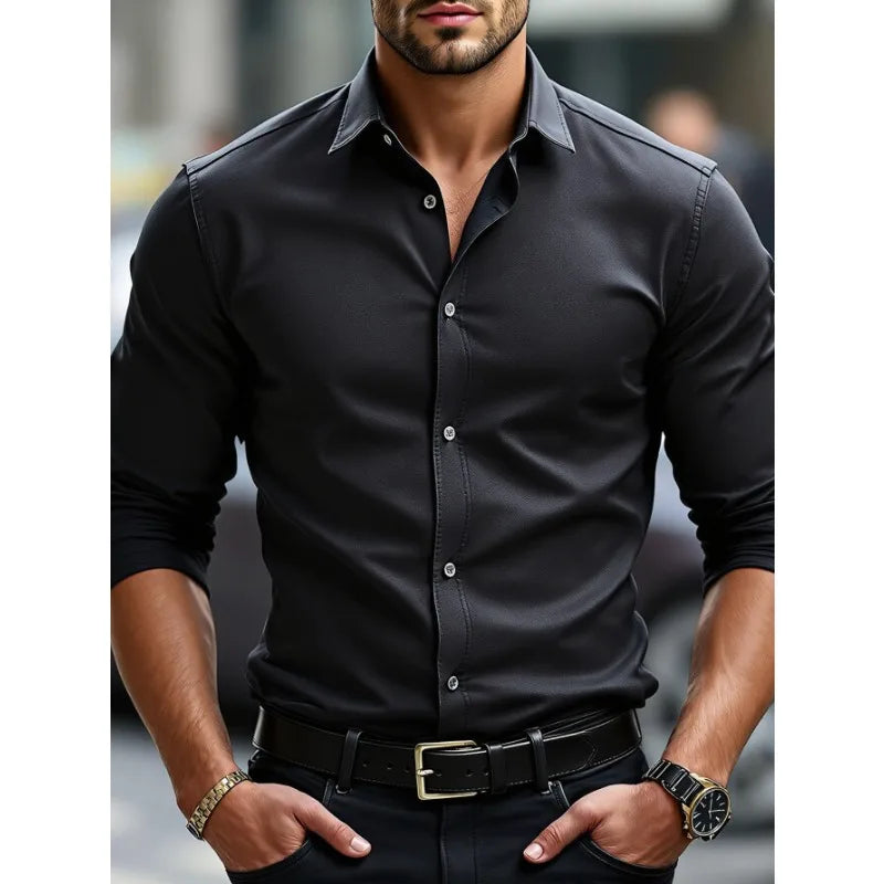 A versatile long sleeve shirt designed for casual and business settings.Clean solid styling with a comfortable structured fit for all seasons.