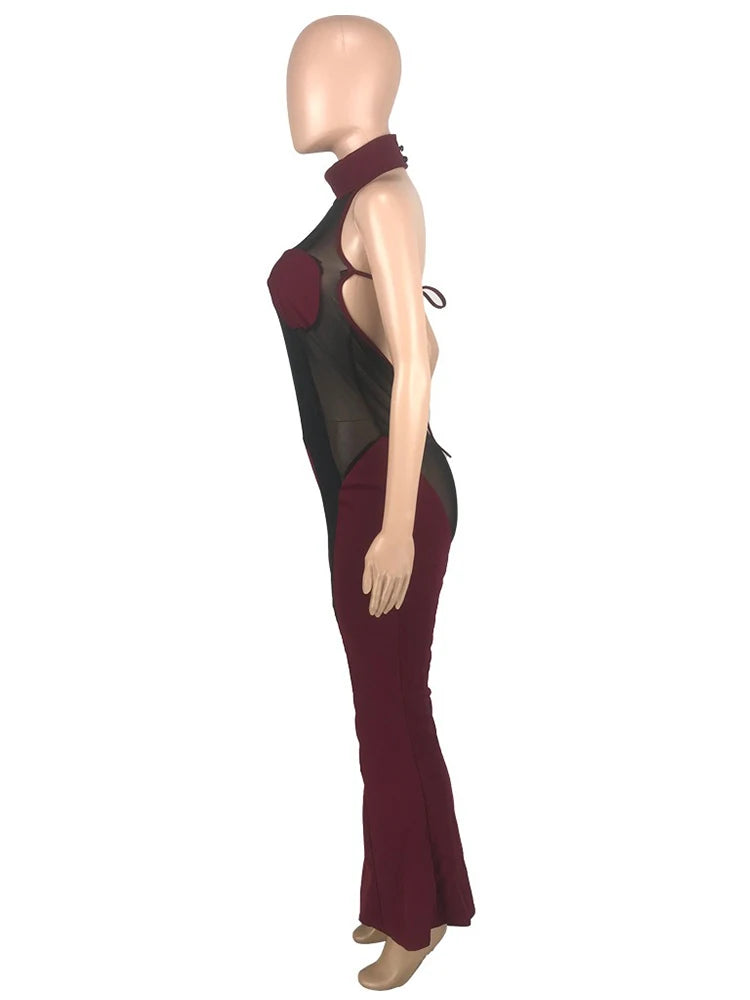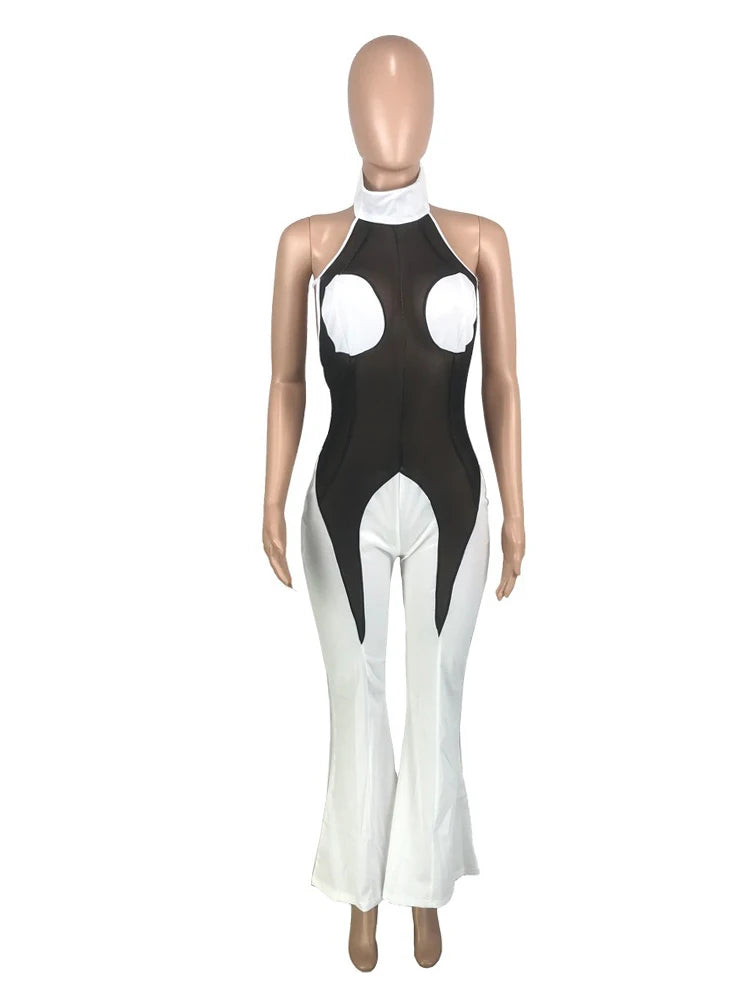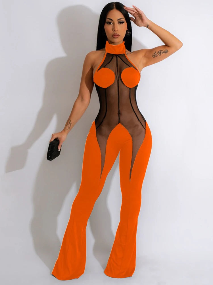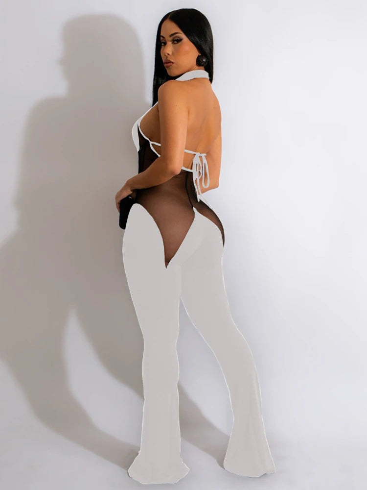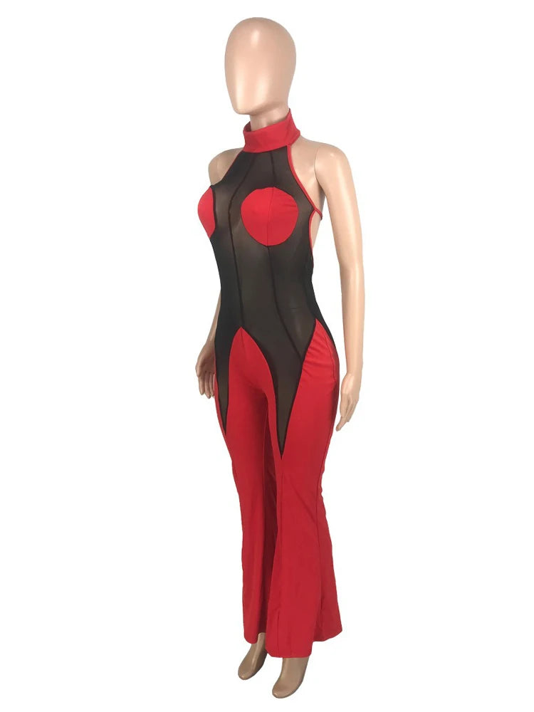 A bold women’s jumpsuit designed for summer evenings and club wear.Slim fit styling with a dramatic backless and flared silhouette.