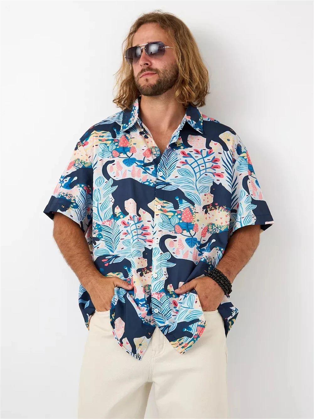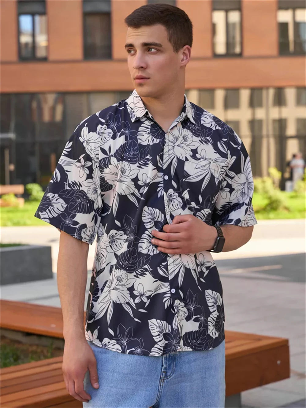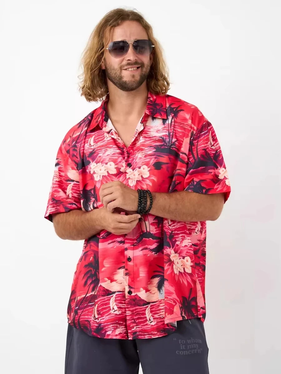 A bold printed shirt designed for daily streetwear style.Lightweight polyester fabric with a relaxed short sleeve fit.