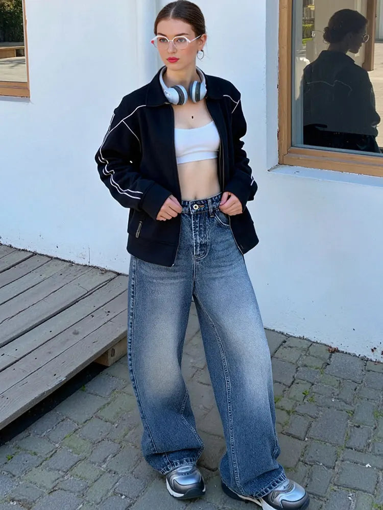 Designed for relaxed autumn streetwear styling.Loose straight fit delivers comfort with a chic high-street look.