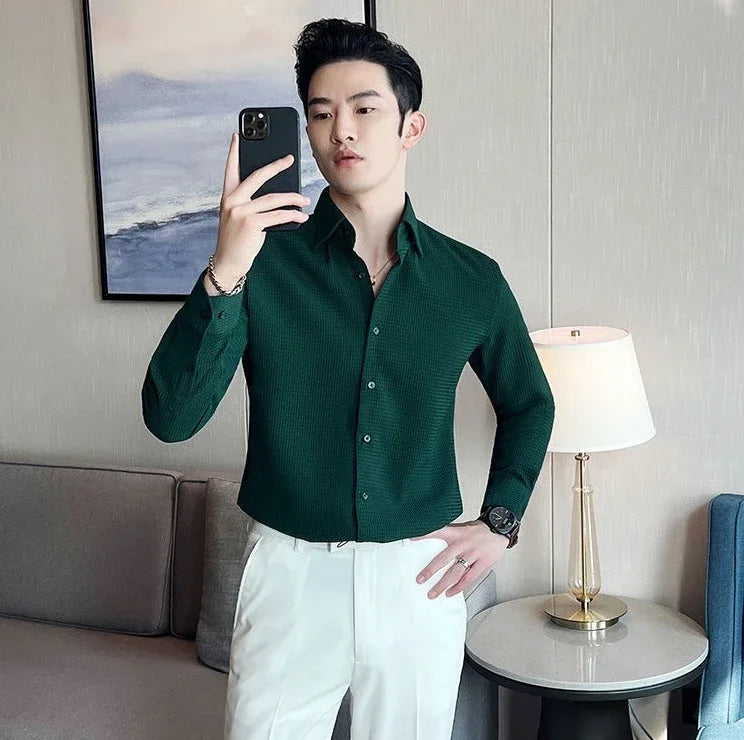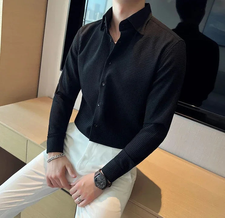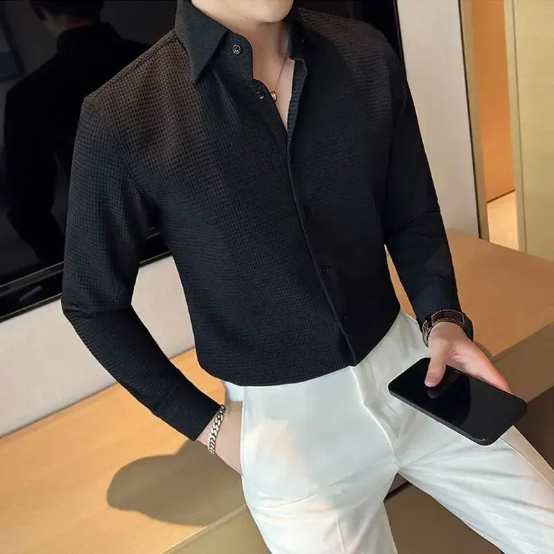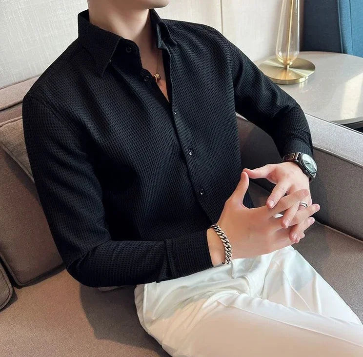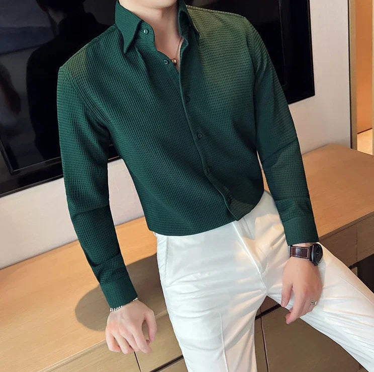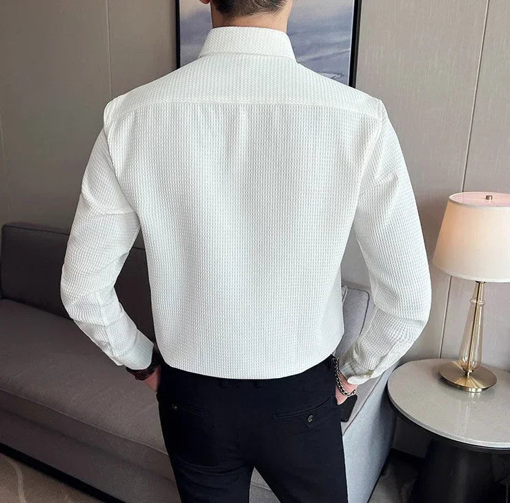A slim-fit shirt designed for smart casual daily wear.Waffle-textured fabric delivers a refined, modern look.Lightweight construction suits spring and summer use.