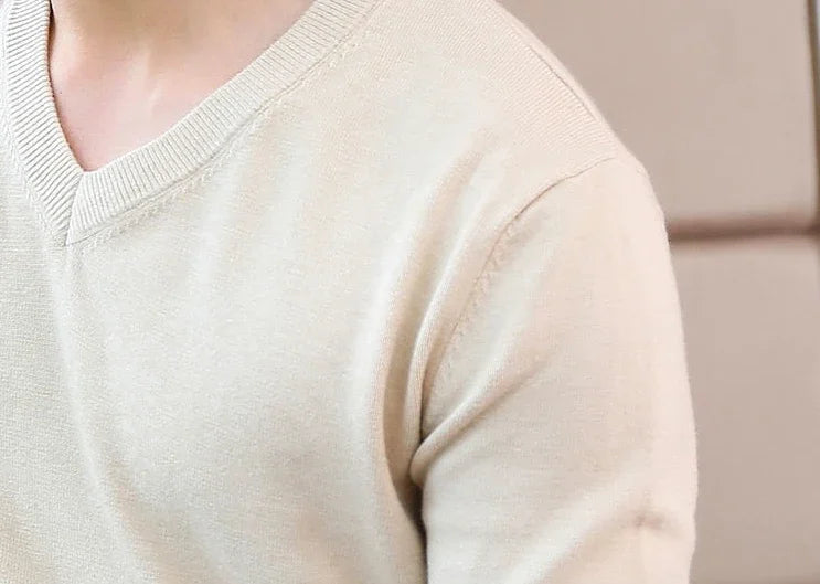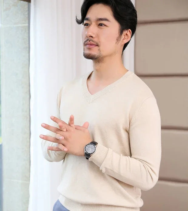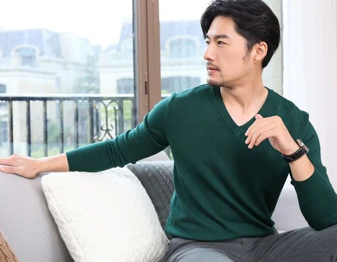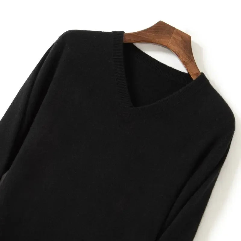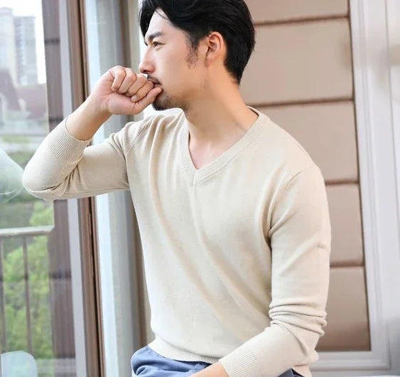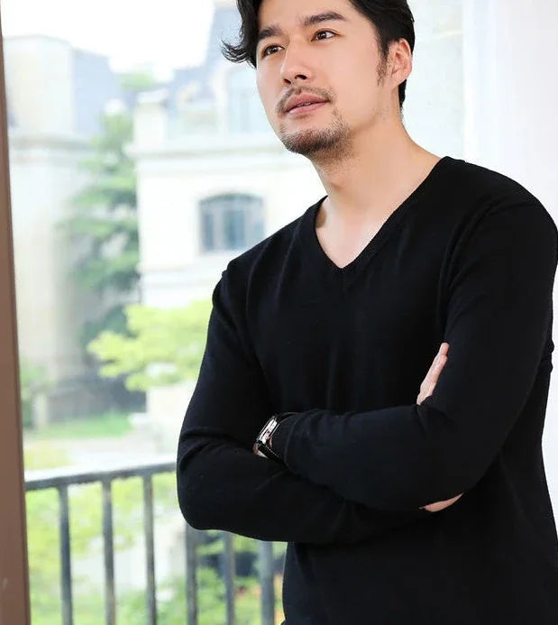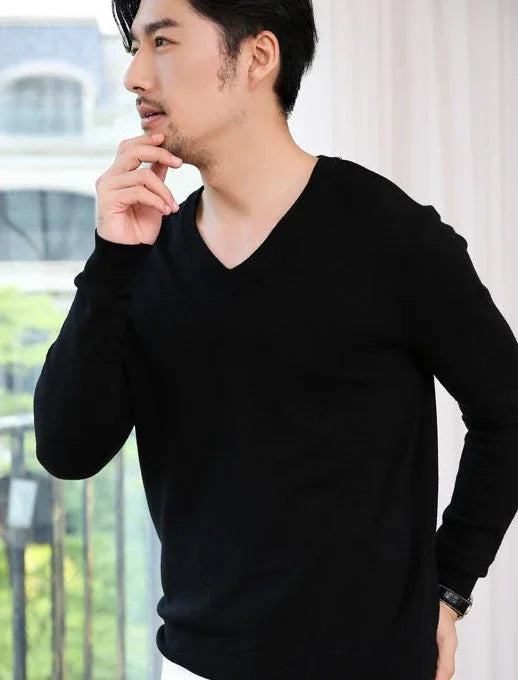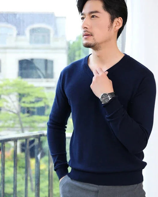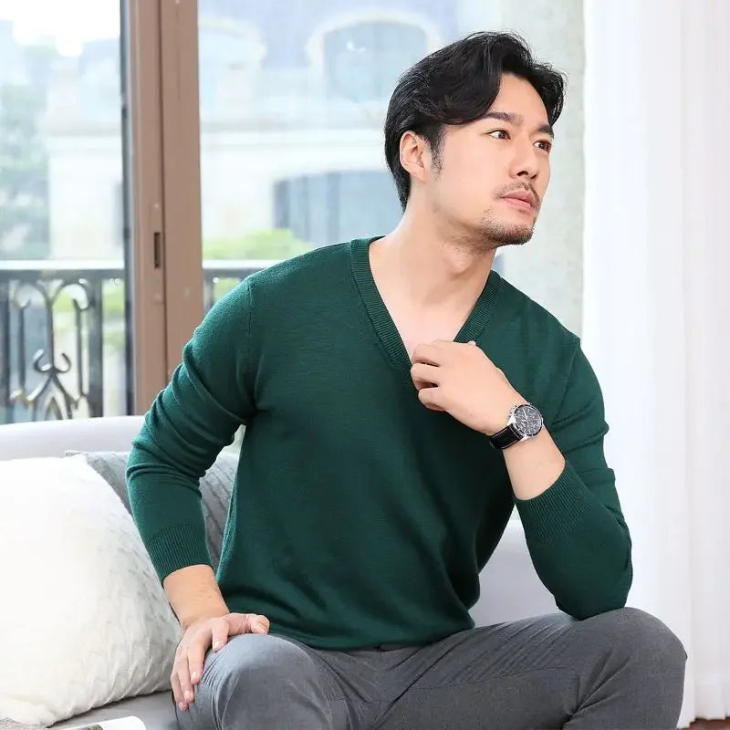 Designed for smart casual wear in autumn and winter.This thick knit pullover features a clean V-neck silhouette with a refined plain finish.A versatile essential suited for business and everyday styling.