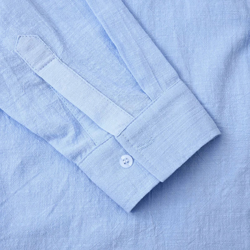 A casual long sleeve top designed for relaxed travel wear. Features a clean solid look with a structured neckline. Suitable for lightweight seasonal layering.