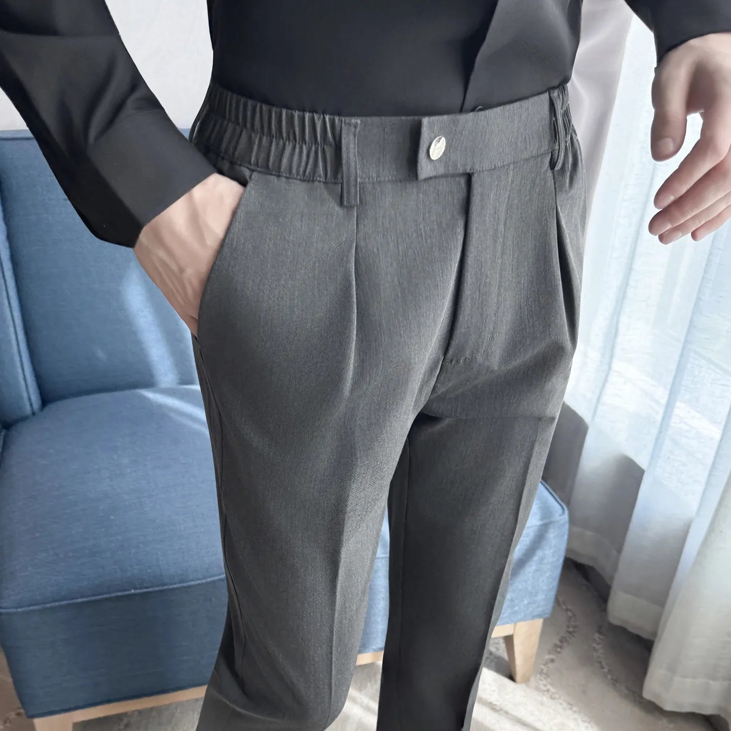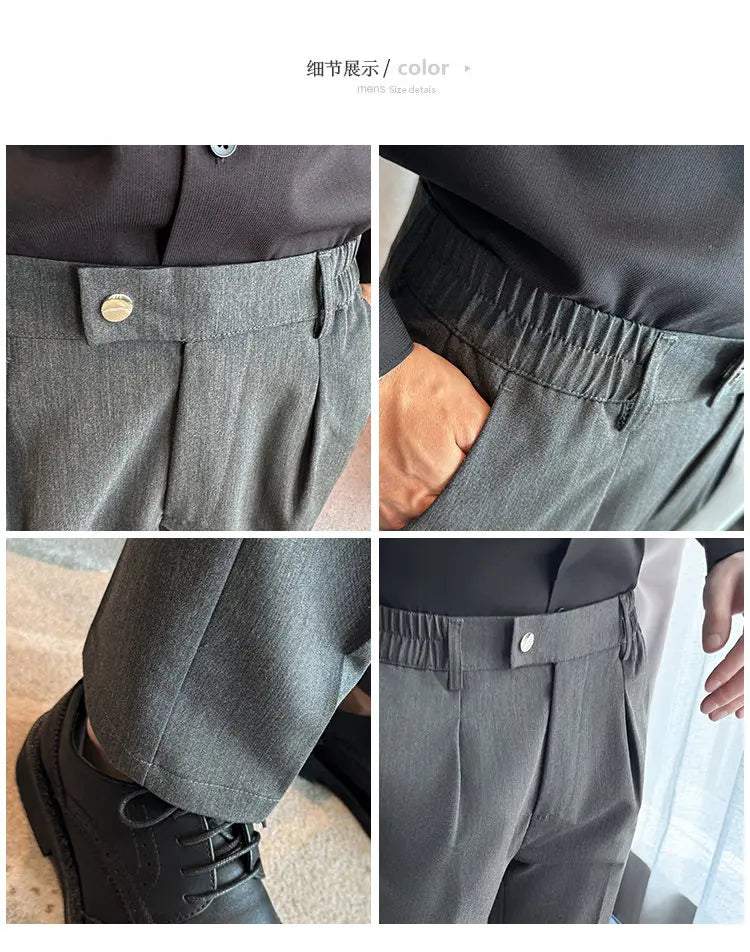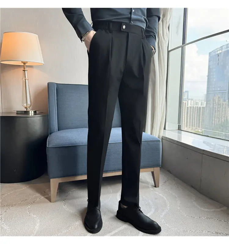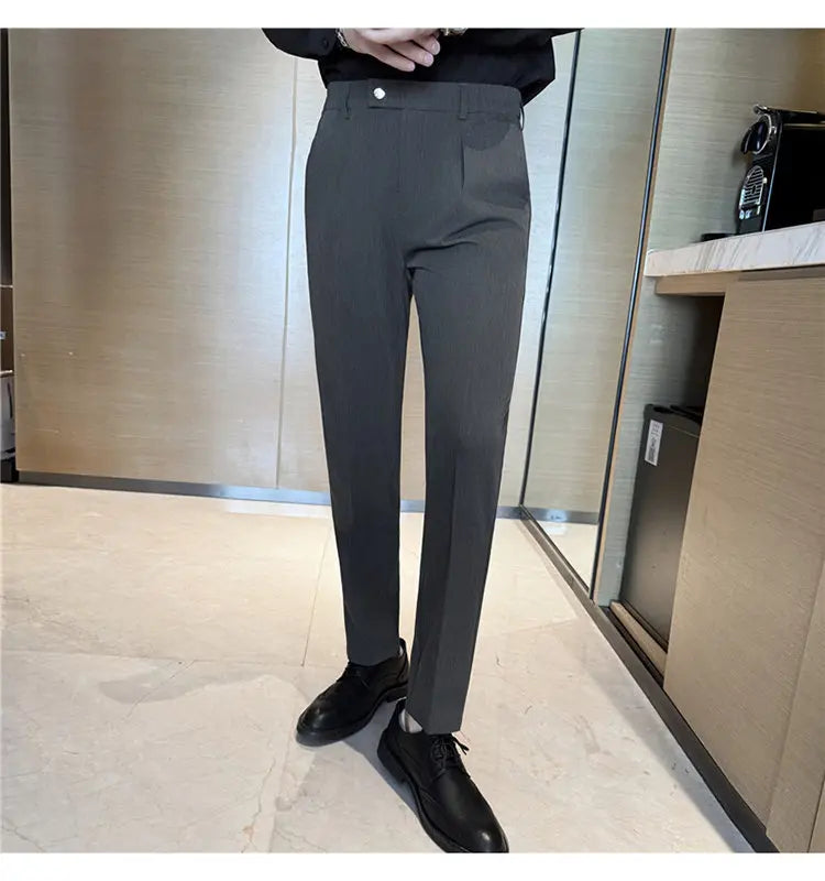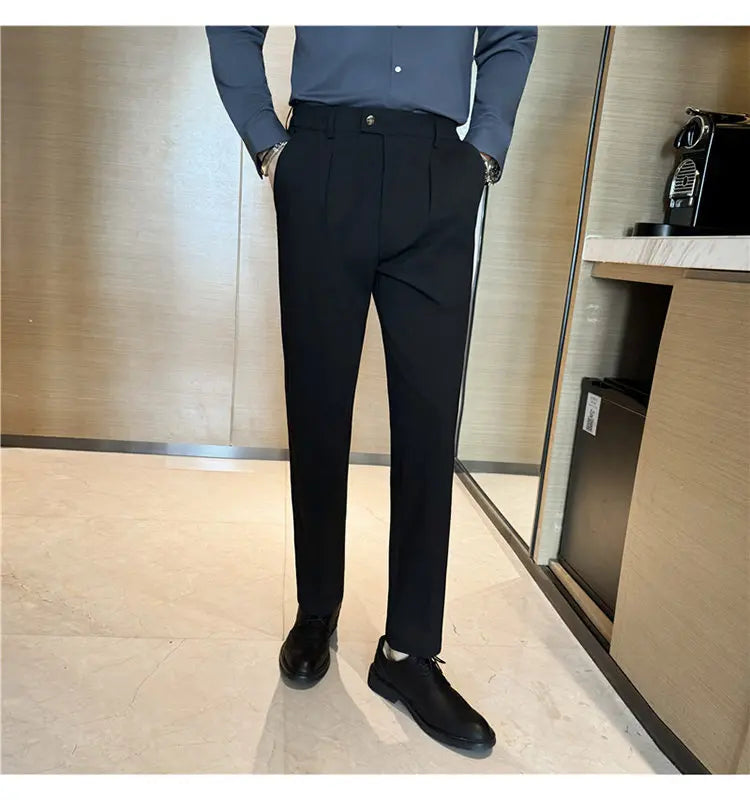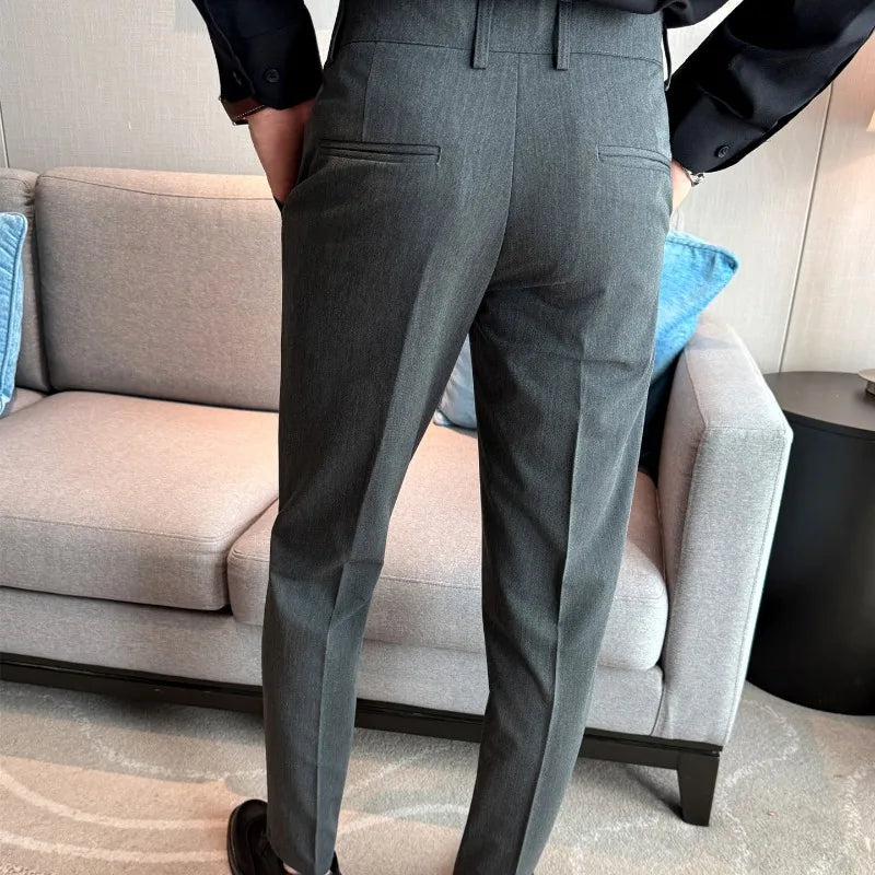 Designed for sharp office and social styling. These slim-fit suit pants deliver a clean British-inspired silhouette with modern comfort. Perfect for spring and autumn business wear.