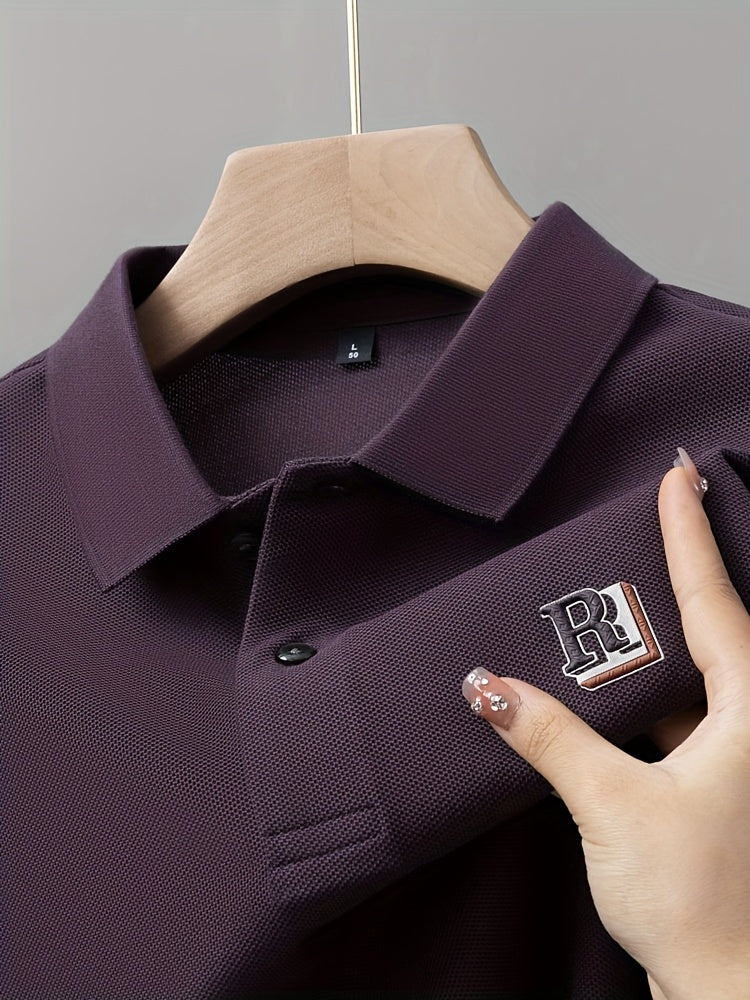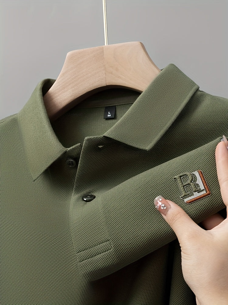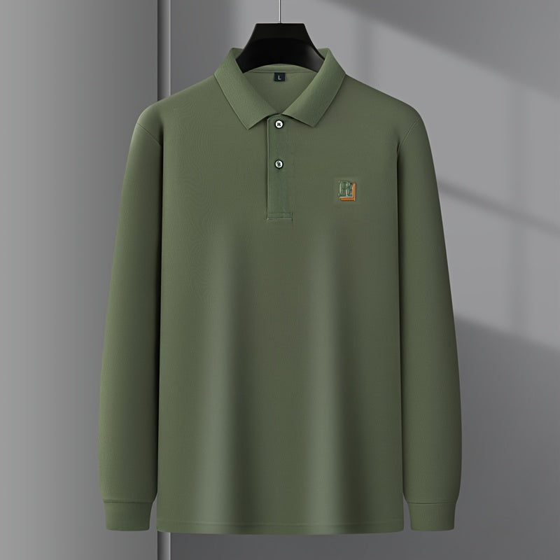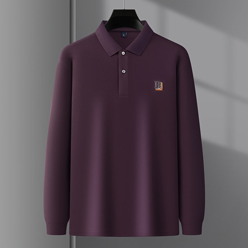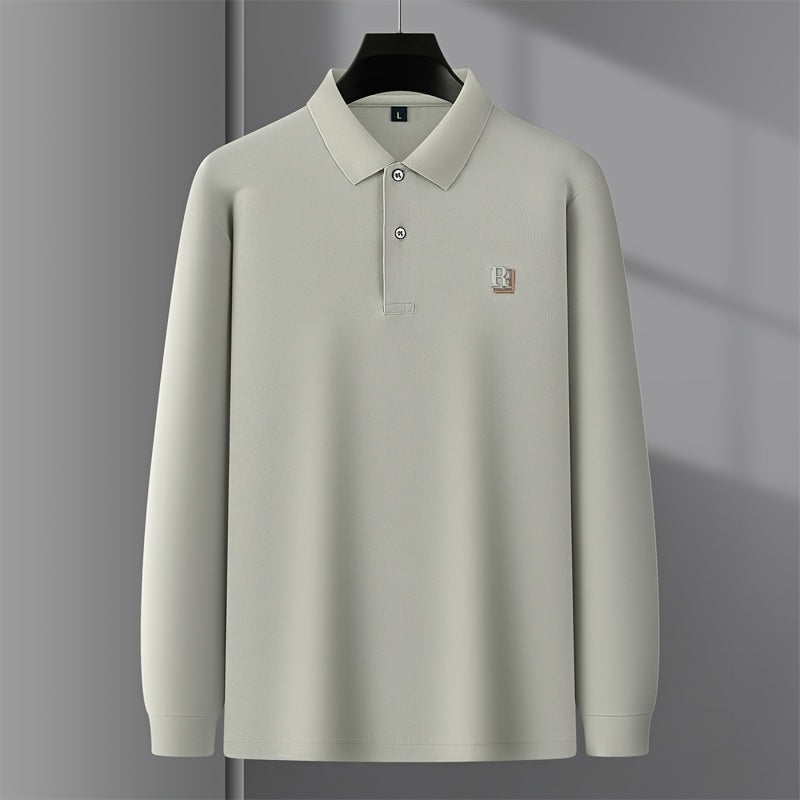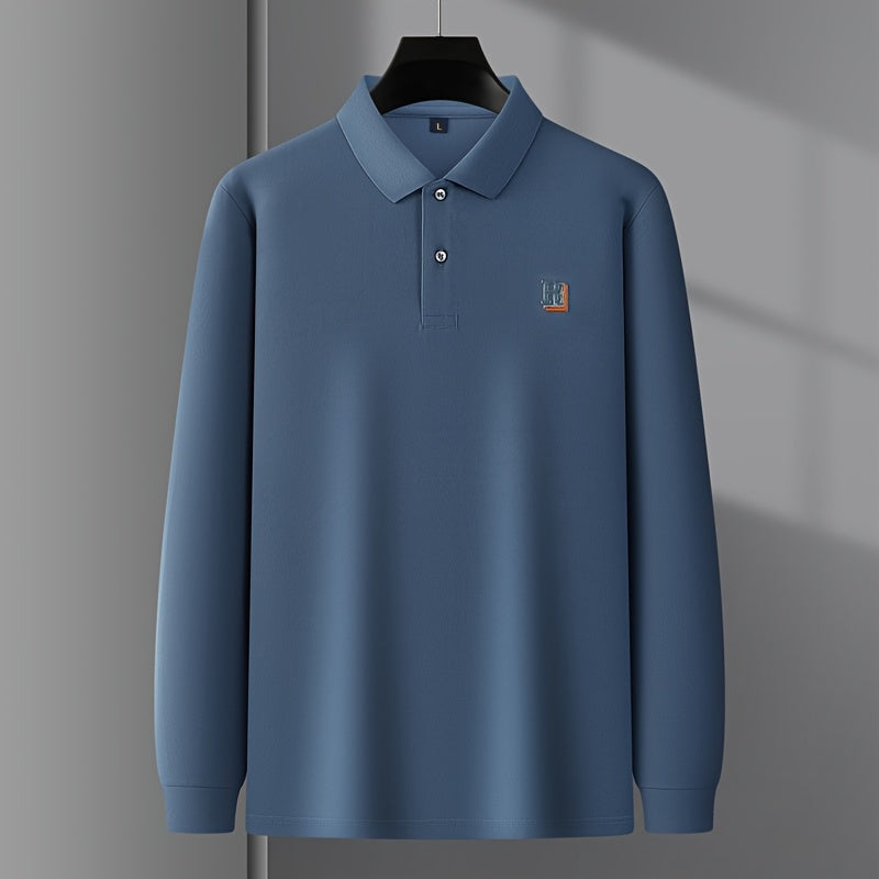 Long sleeve knit polo designed for cooler casual wear. Regular fit with soft stretch and a subtle textured graphic finish.