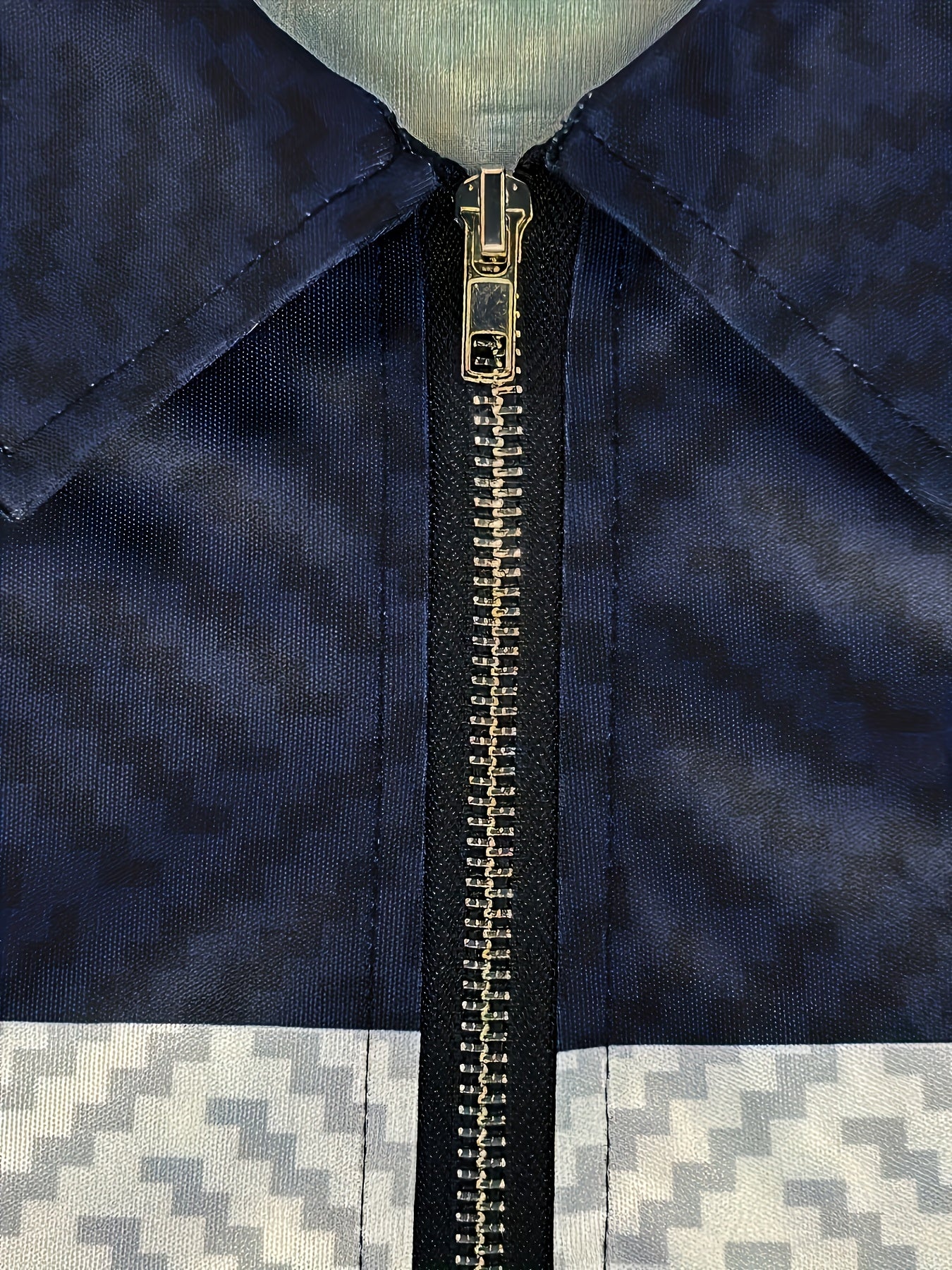 Lapel collar with metallic zipper detail