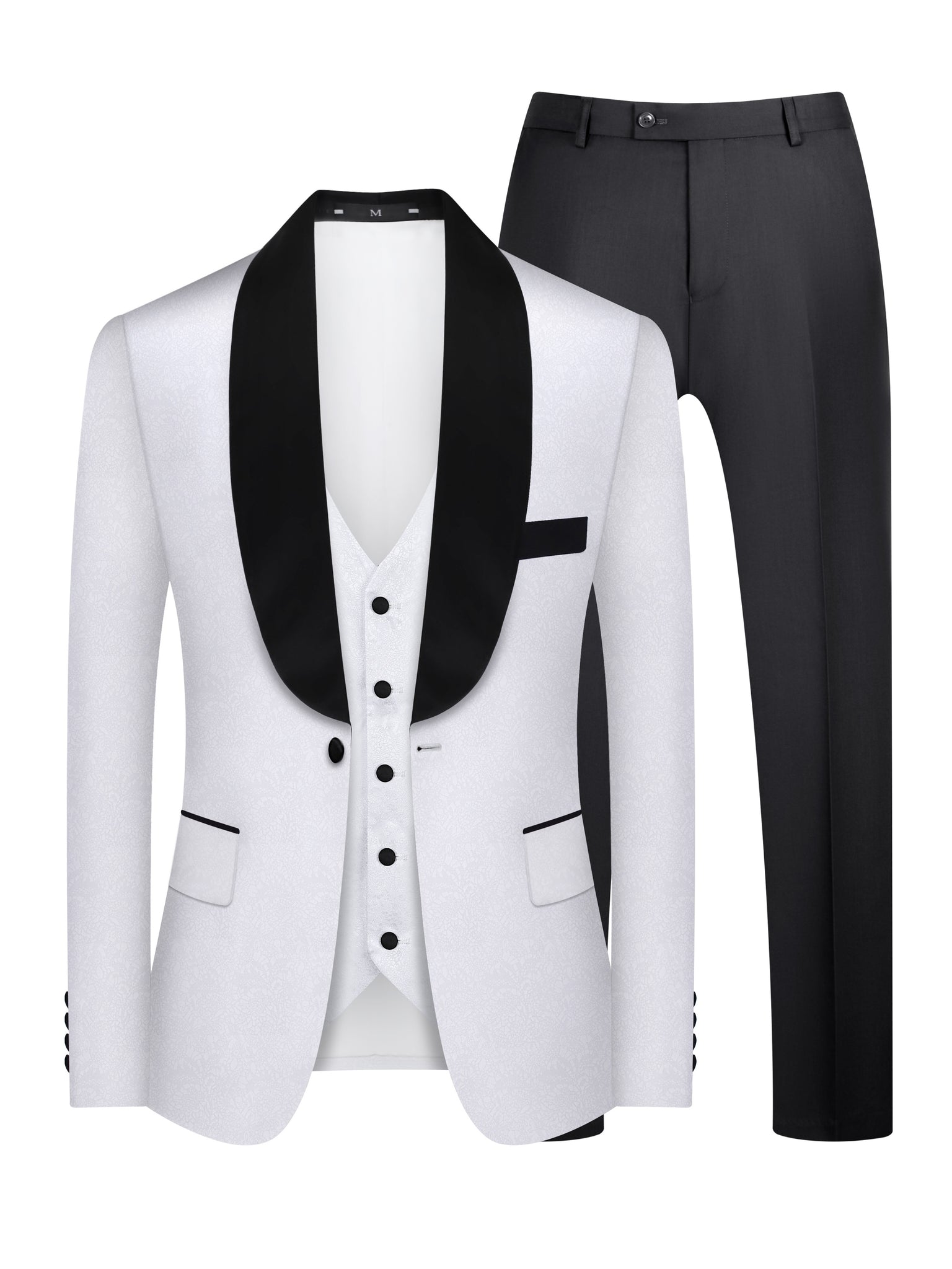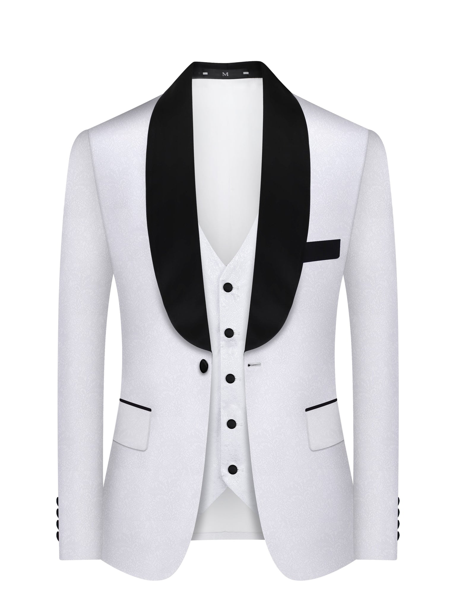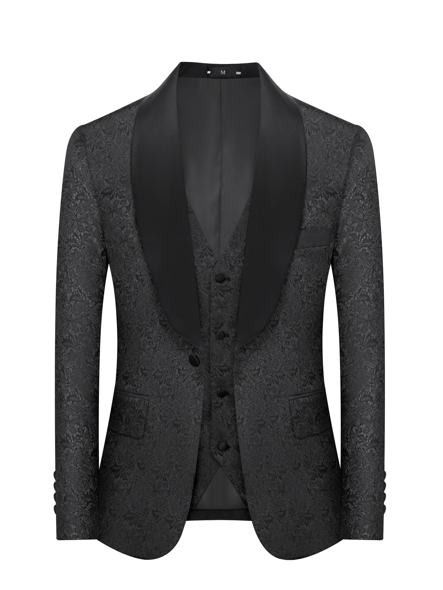 Three-piece woven suit set designed for formal party occasions. Regular fit with a refined paisley surface and structured tailoring.