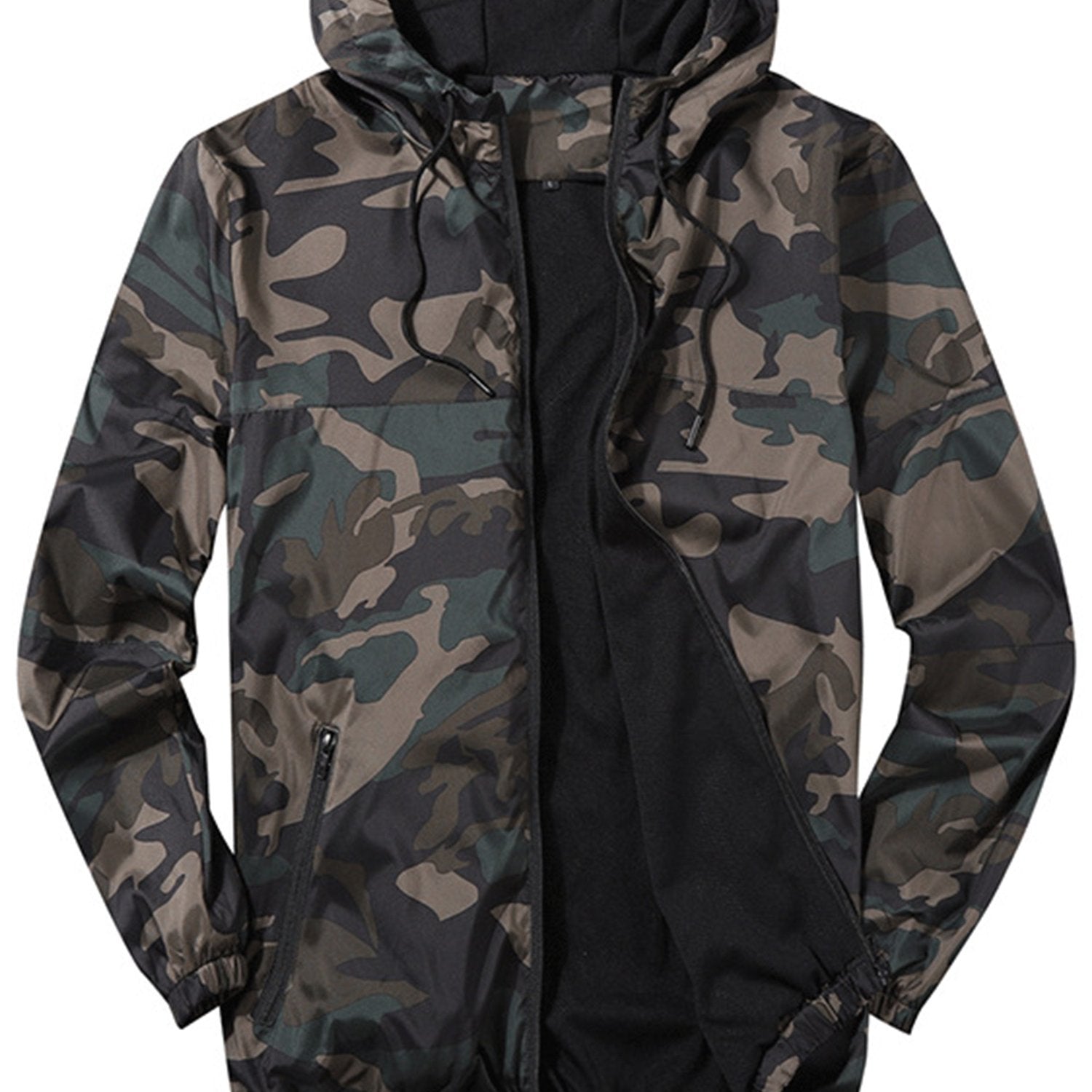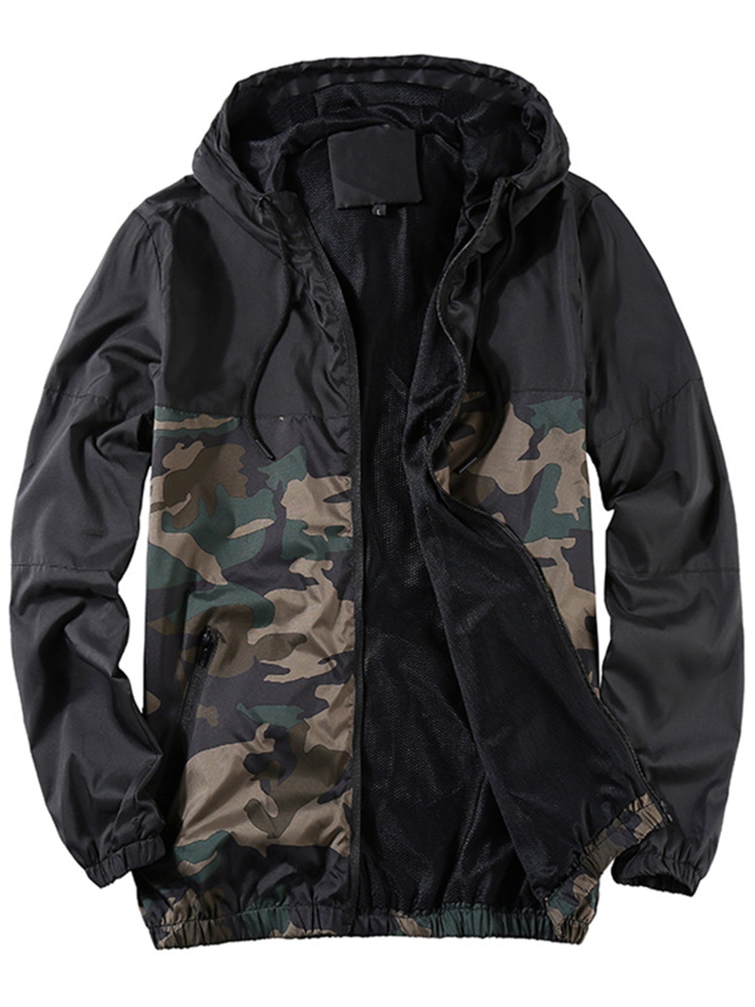 A lightweight, breathable camo jacket designed with mesh lining for comfort during fall weather. Featuring a hooded silhouette, zipper closure, and practical pocket details for casual and athletic daily wear.