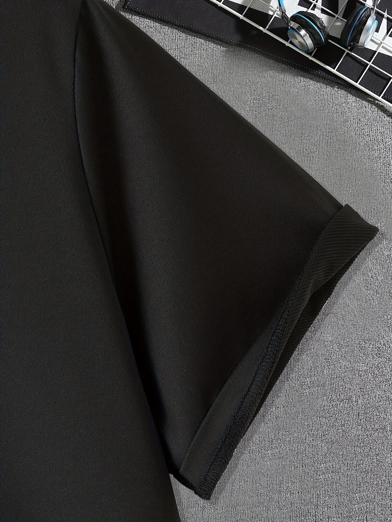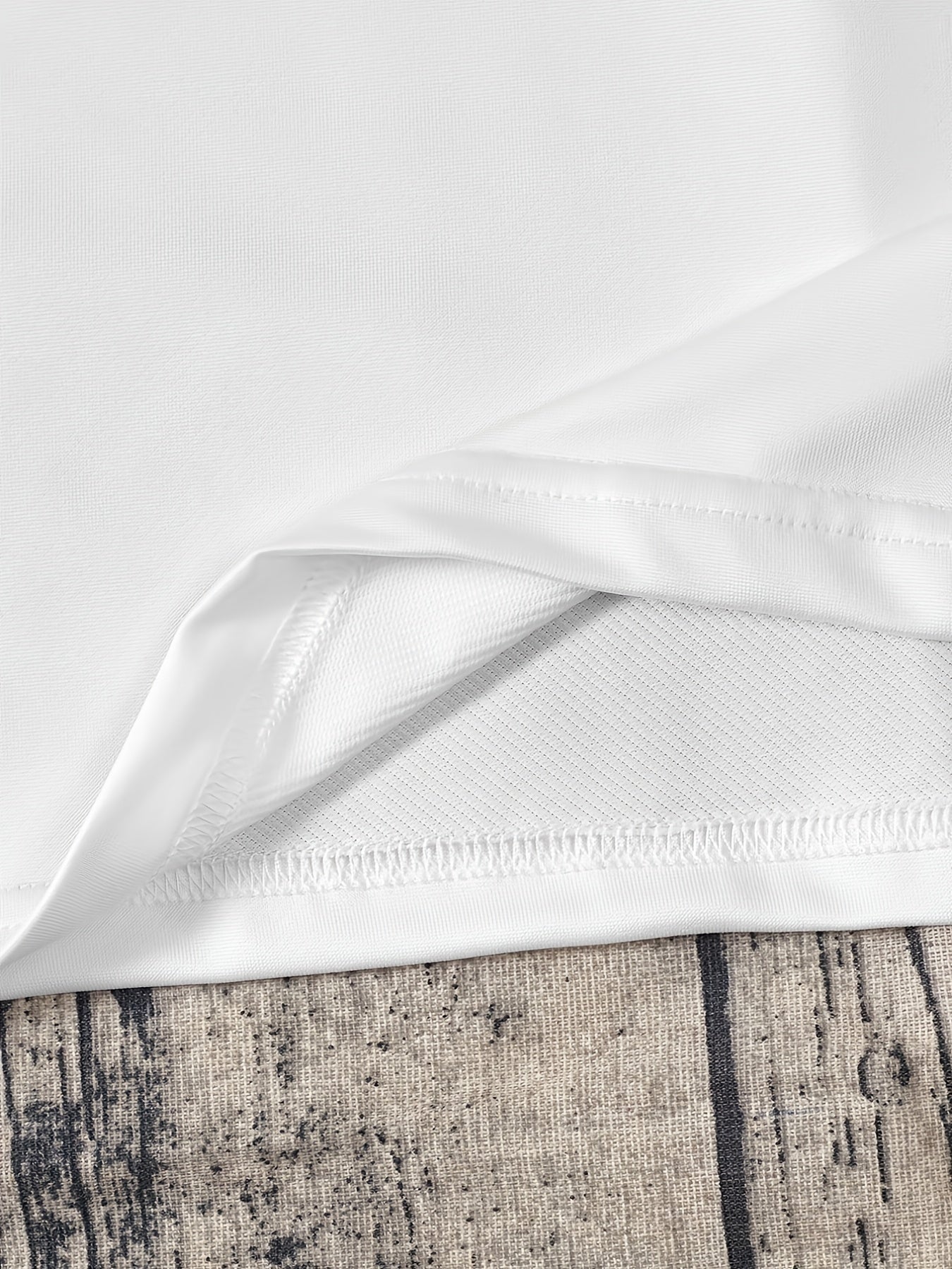 A casual crew-neck T-shirt featuring geometric appliqué artwork for a clean, modern look. Crafted from soft knit polyester with slight stretch, ideal for comfortable wear across spring, summer, and fall.