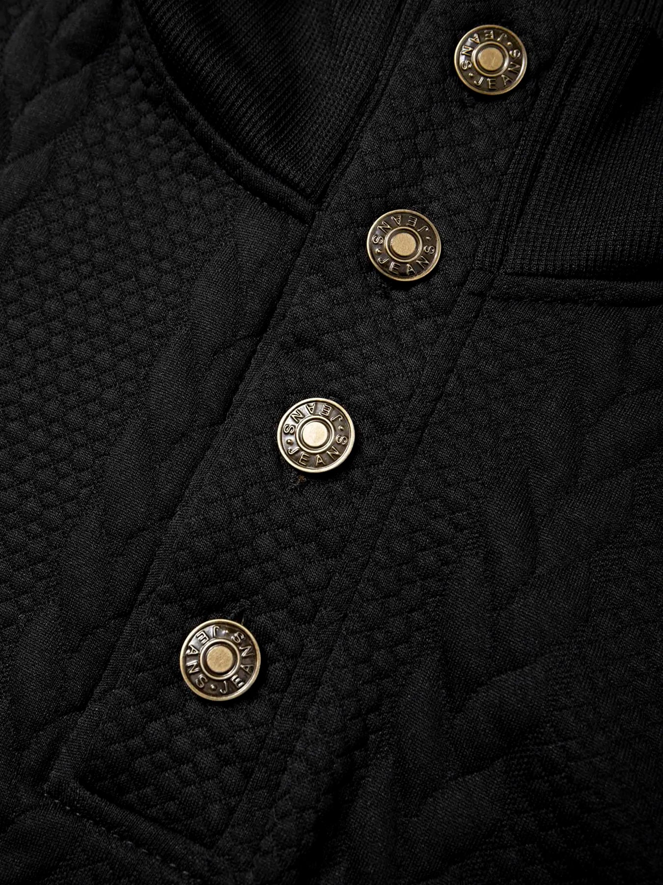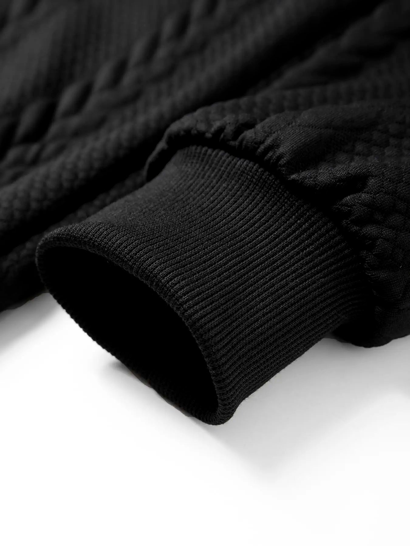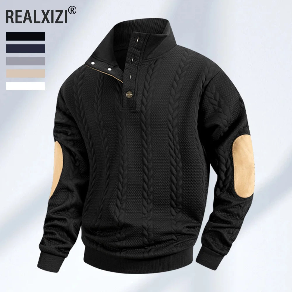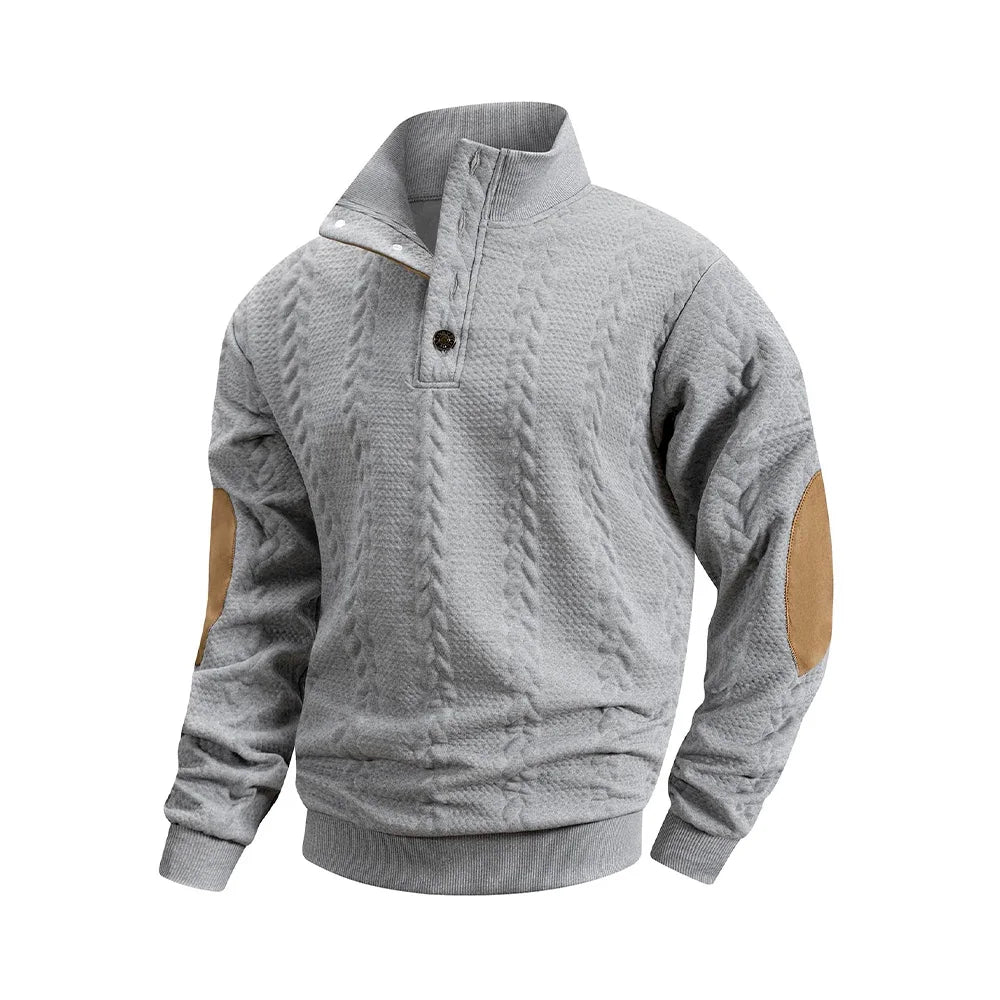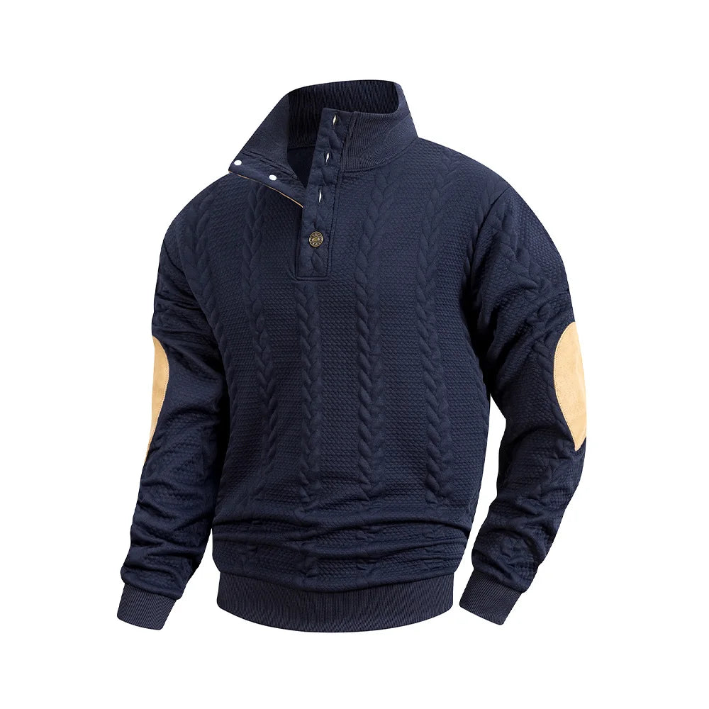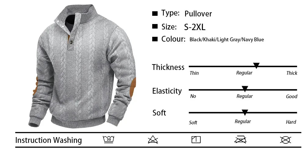Made for daily wear during autumn and winter seasons.This slim-fit knit pullover features a structured stand collar with patchwork detailing.Thick fabric construction ensures warmth with a refined casual look.