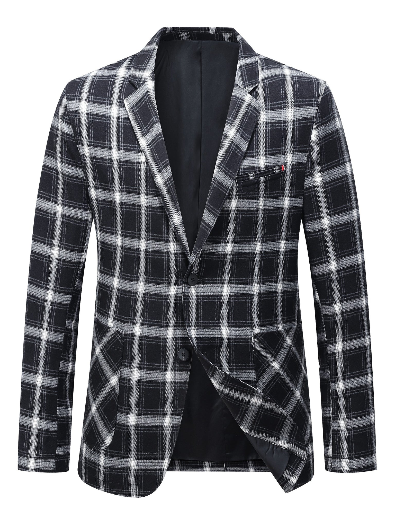 Lightweight woven blazer designed for classic casual styling. Regular fit with a clean plaid surface and breathable structure.