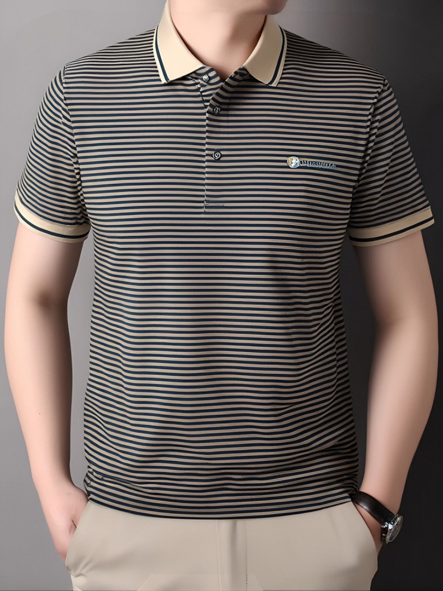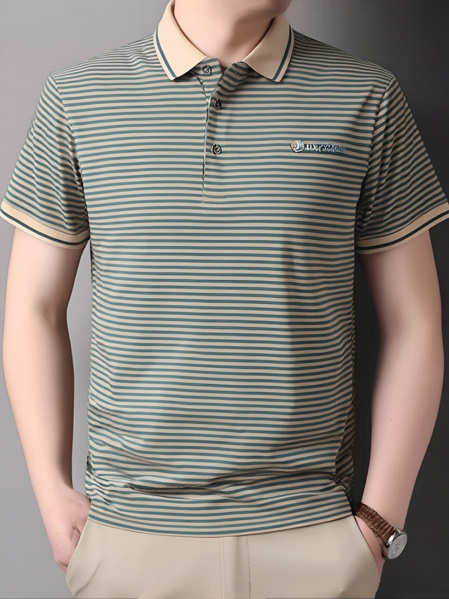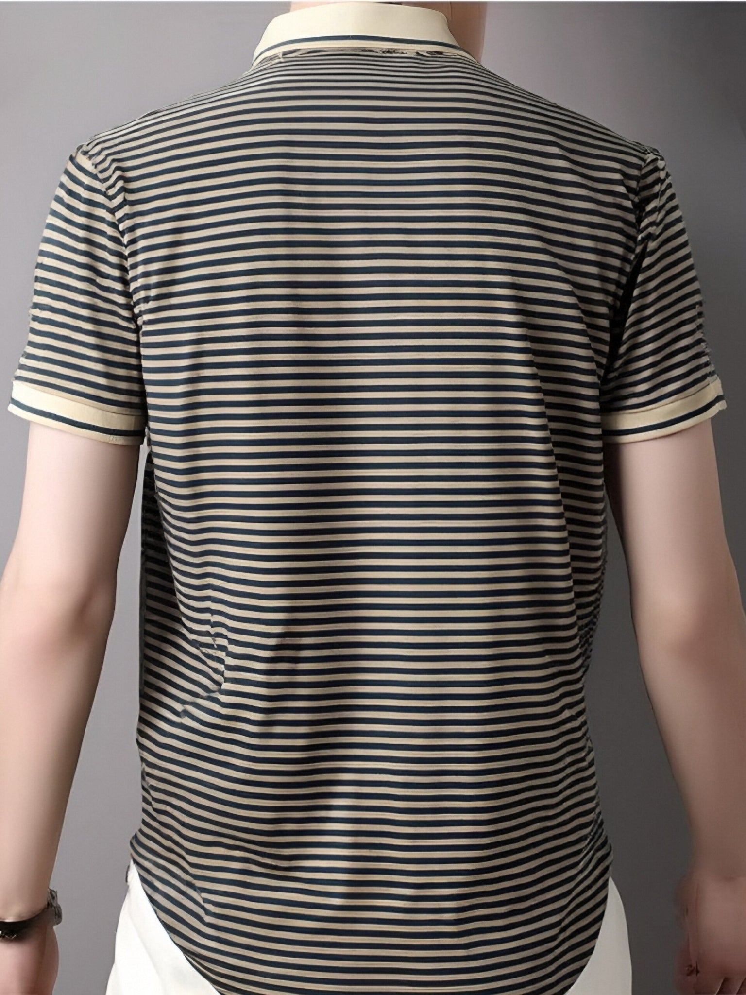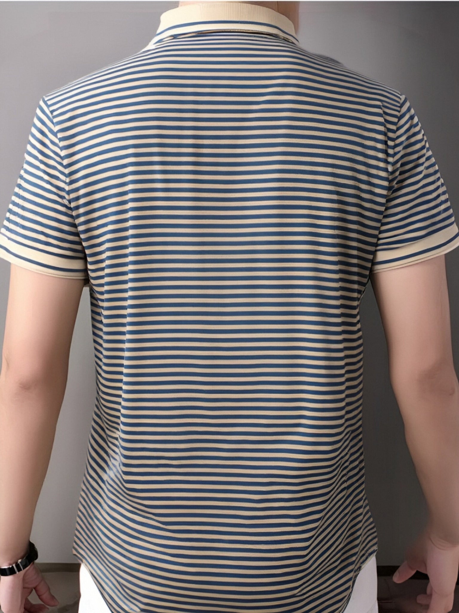 Lightweight short sleeve knit polo designed for warm-weather wear. Regular fit with a clean striped look and easy structure.