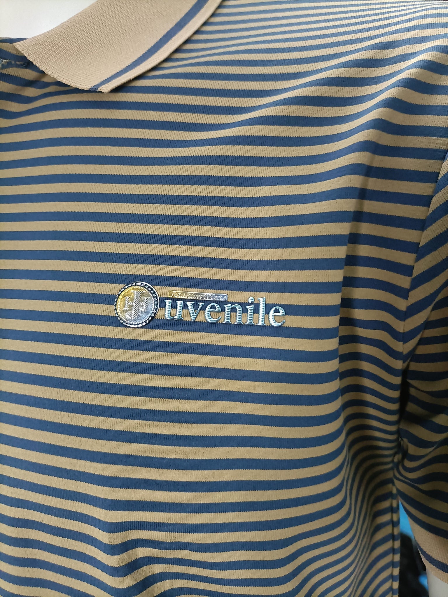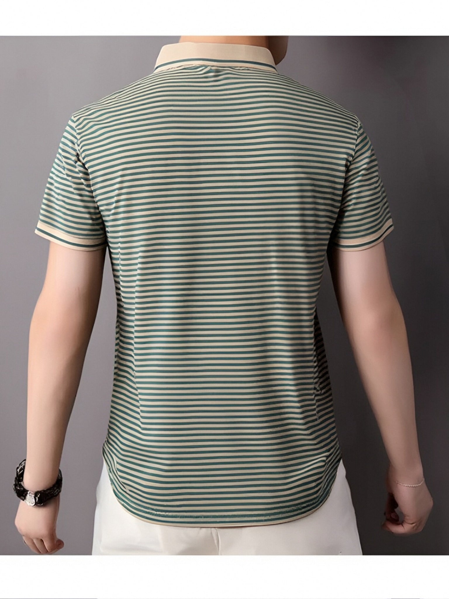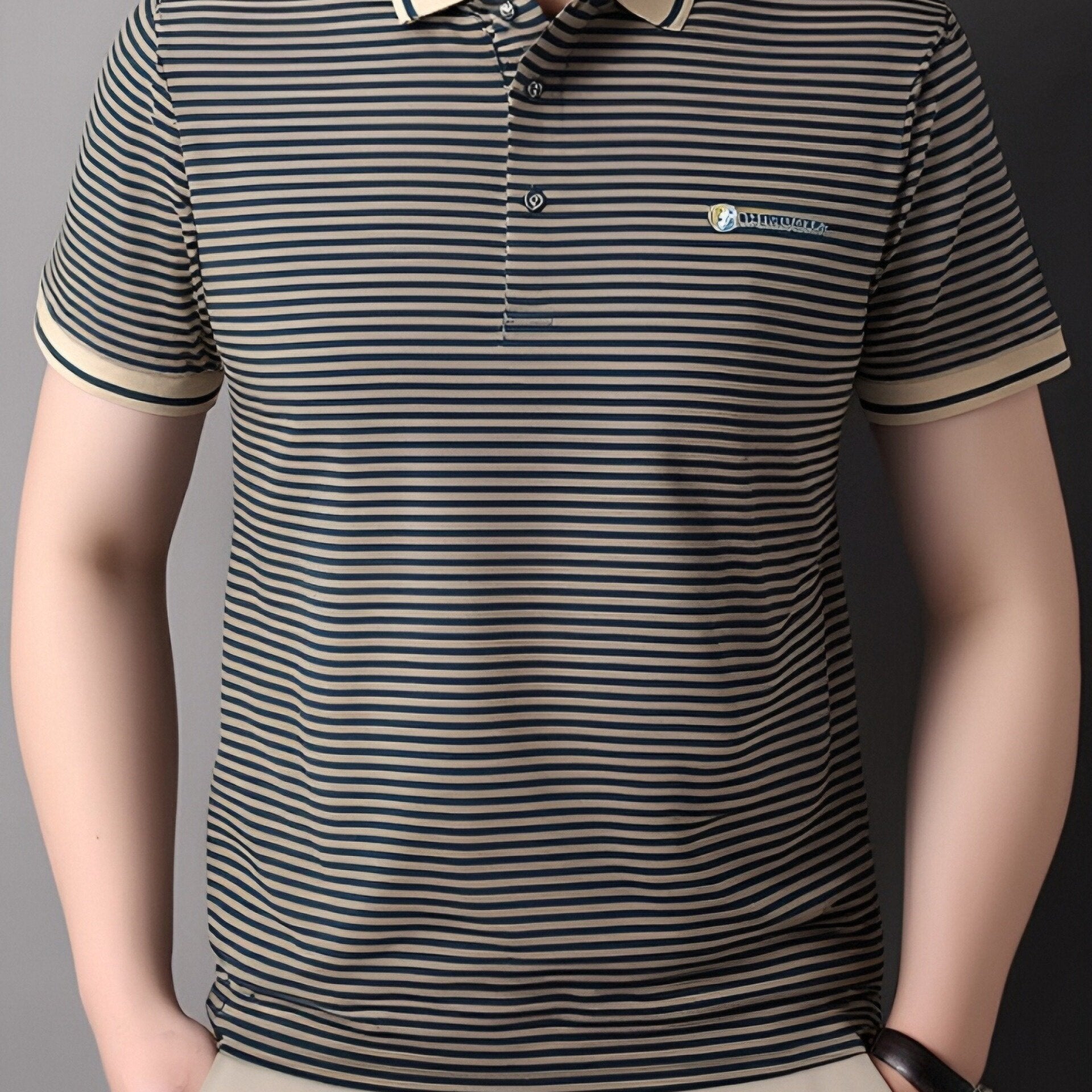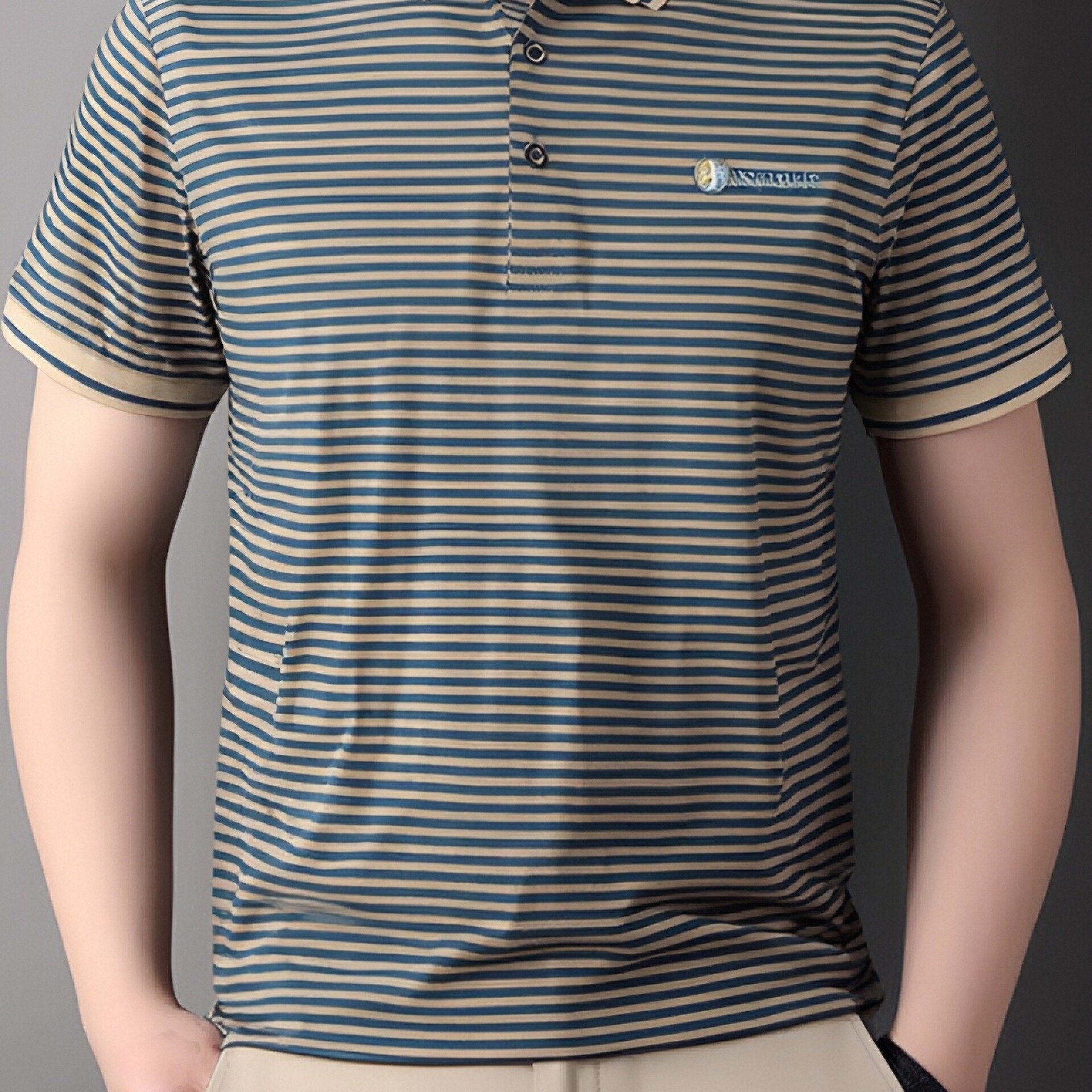 Lightweight short sleeve knit polo designed for warm-weather wear. Regular fit with a clean striped look and easy structure.
