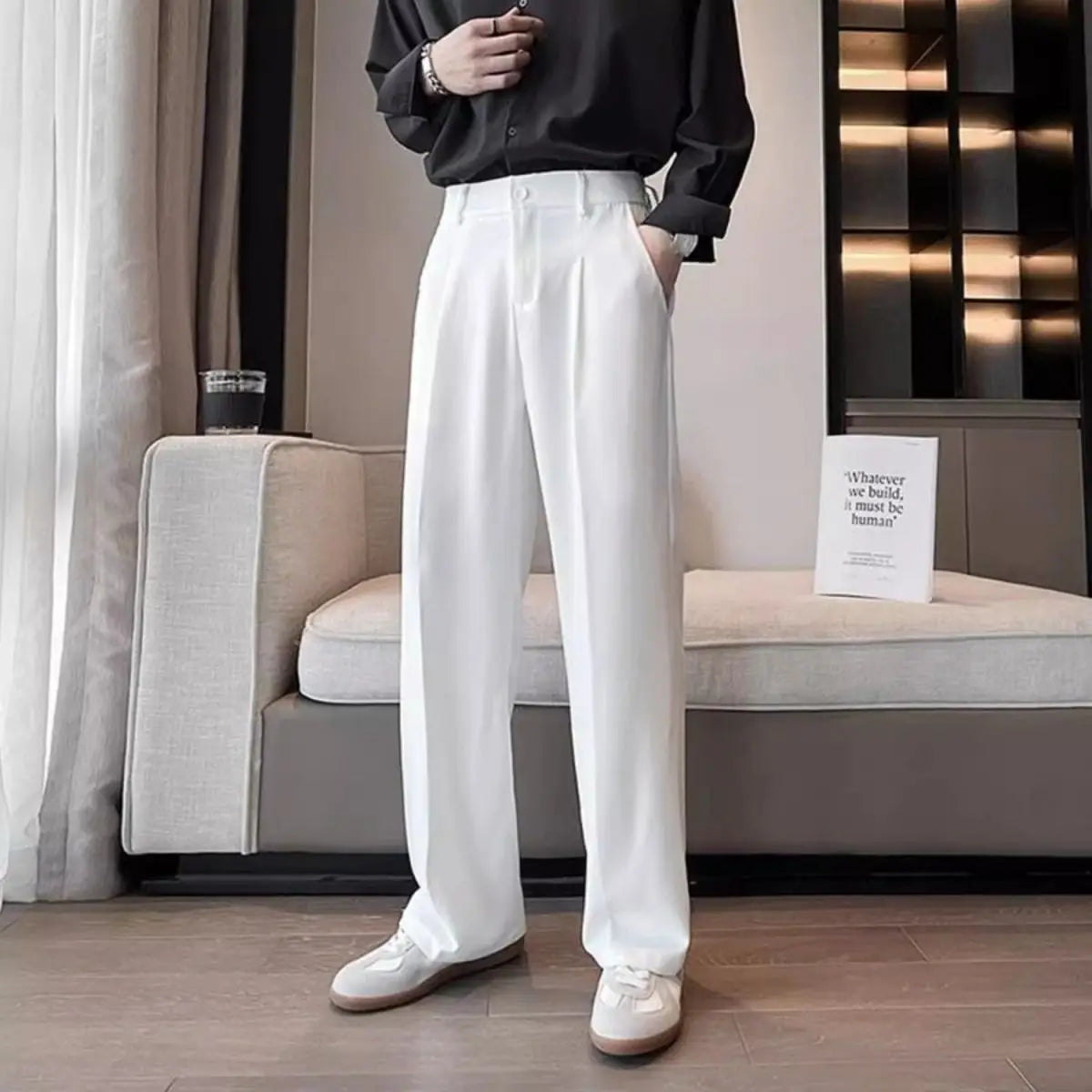 High-waist straight wide-leg design