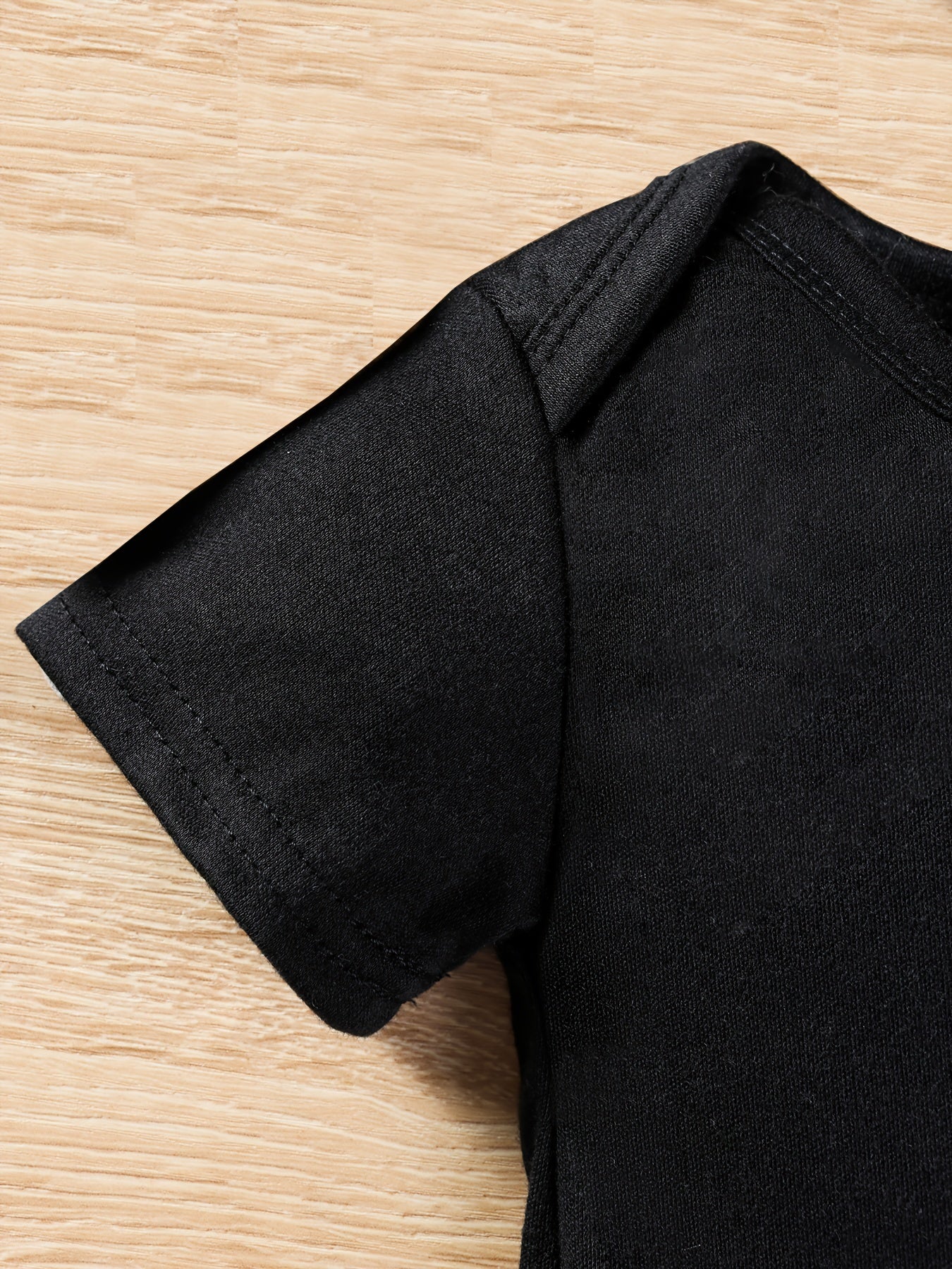 A casual short sleeve bodysuit designed for baby girls. Made from soft knit polyester with a comfortable regular fit. Ideal for outdoor wear during summer.