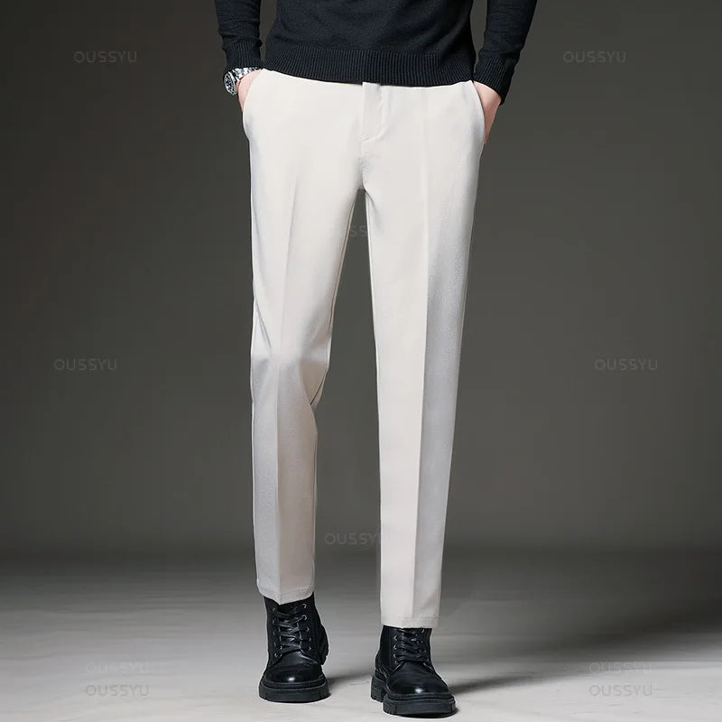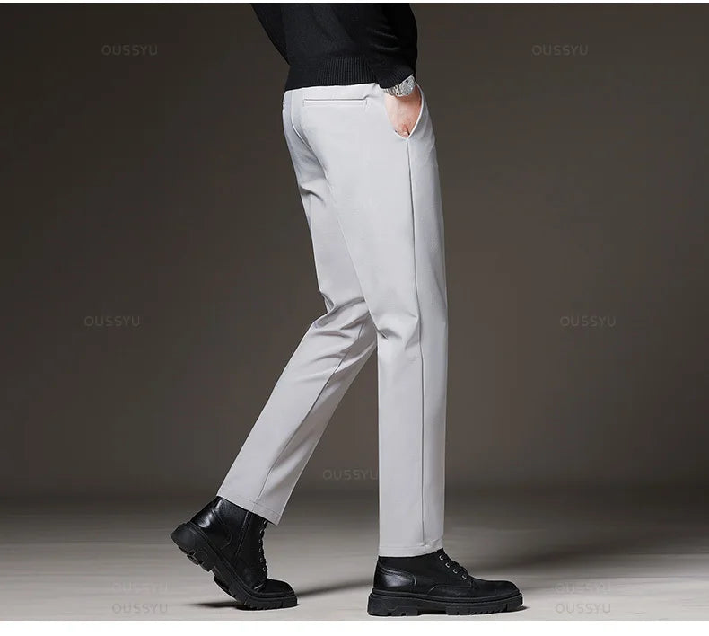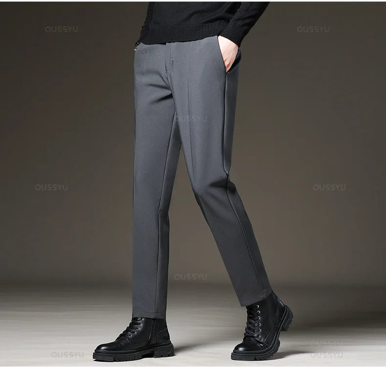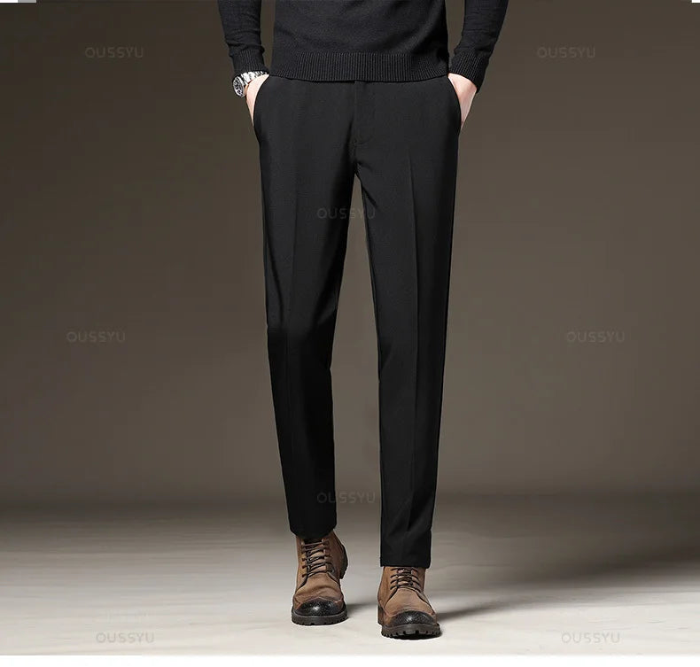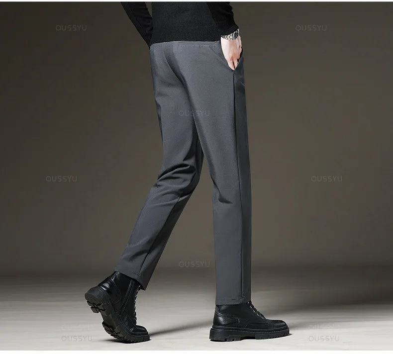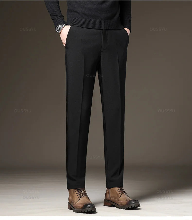 Designed for sharp office and daily styling. These straight-leg suit pants offer a clean silhouette with flexible comfort. Perfect for four-season business and smart casual wear.