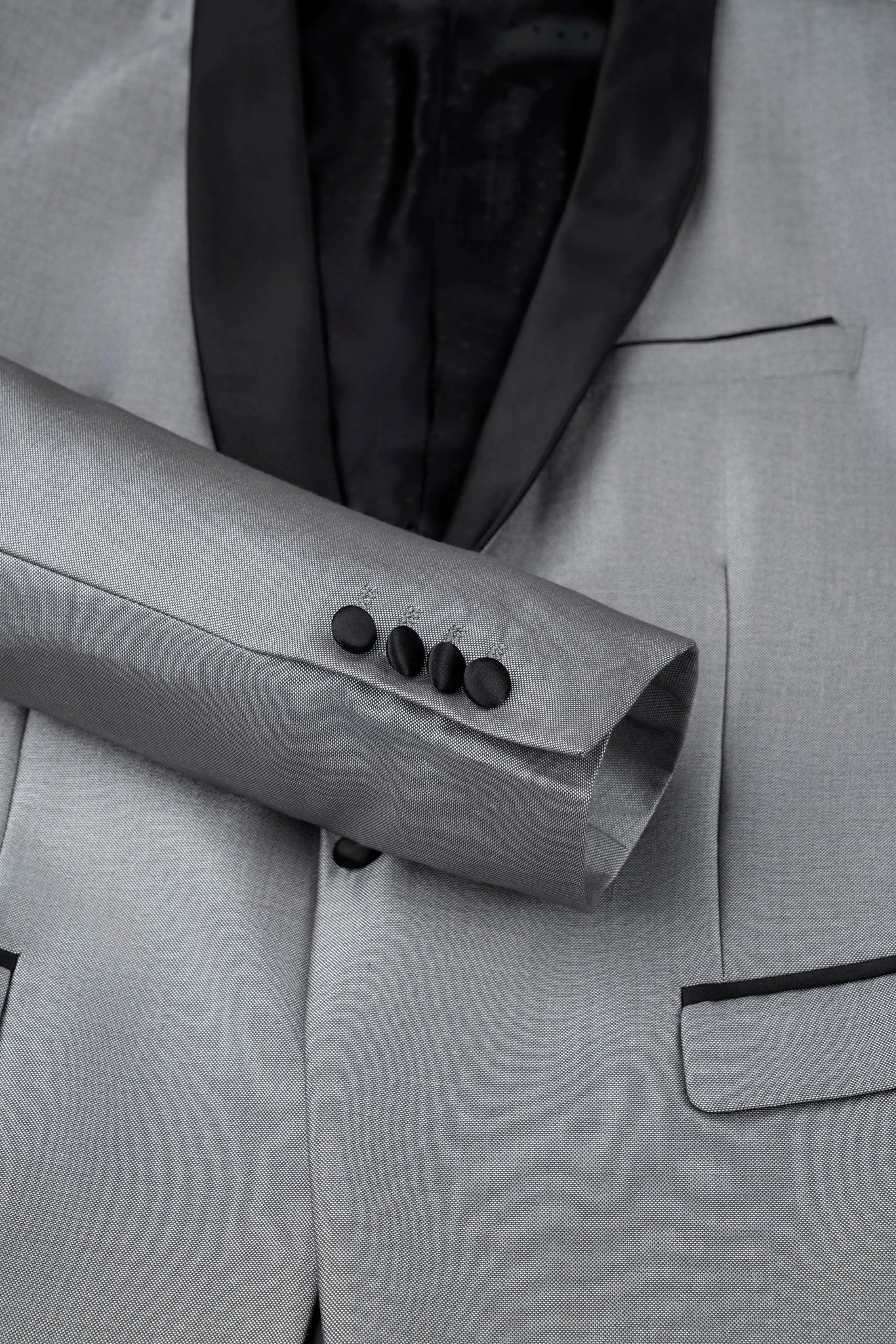 Three-piece woven suit set designed for formal party and event wear. Slim tailored profile with a clean structured and elegant finish.
