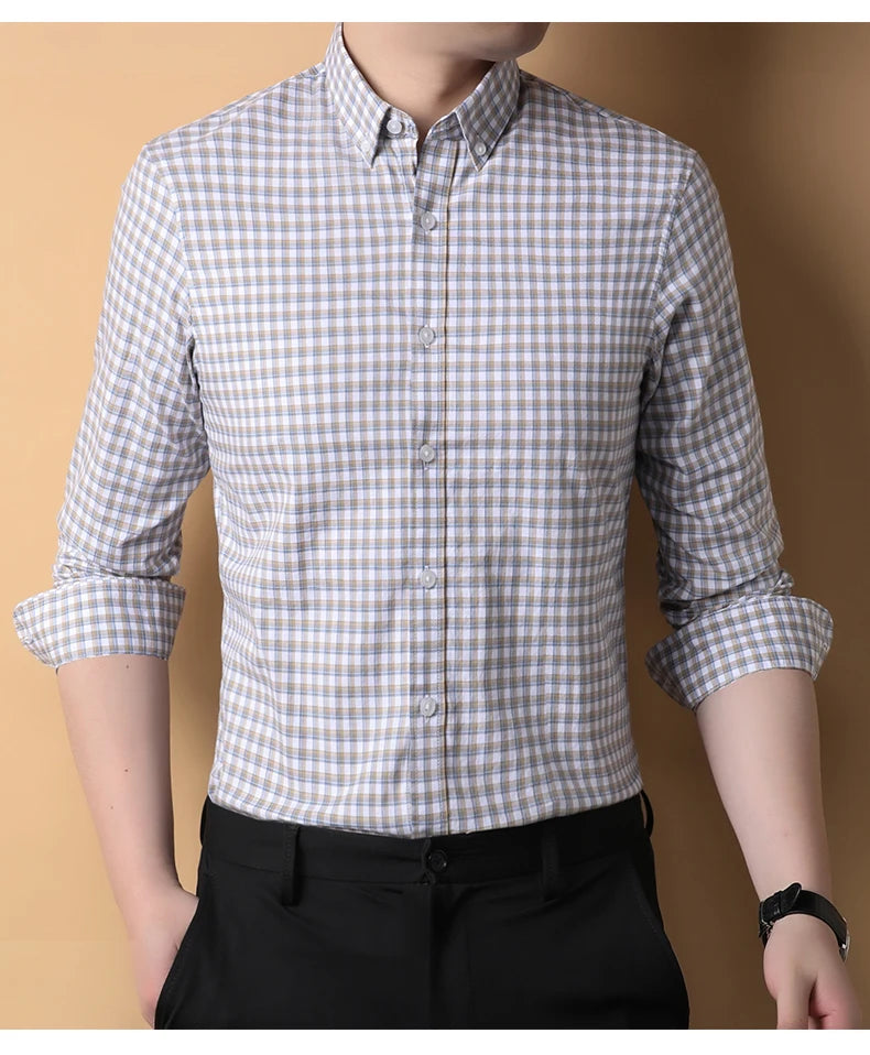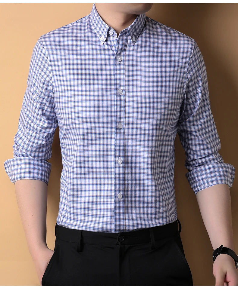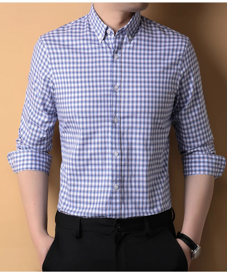 A refined long sleeve shirt designed for business casual and daily wear.Non-iron cotton fabric offers a clean, structured slim fit.