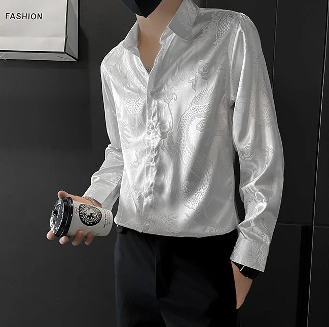 A slim-fit long sleeve shirt designed for modern casual wear.Smooth fabric blend supports comfort in warmer seasons.Graphic detailing adds a bold, fashion-forward touch.