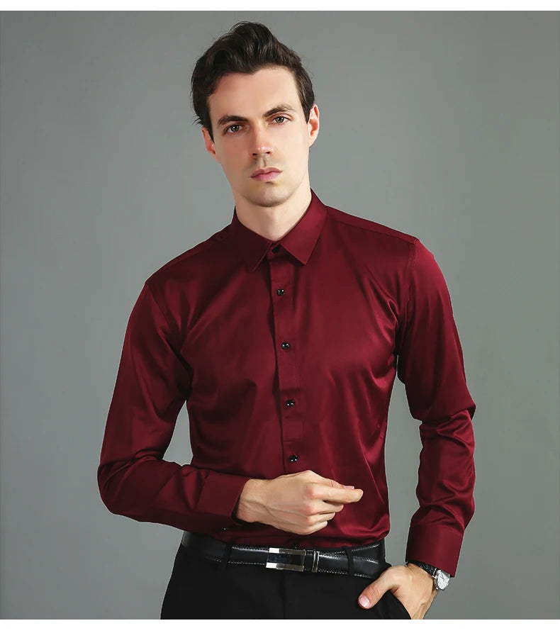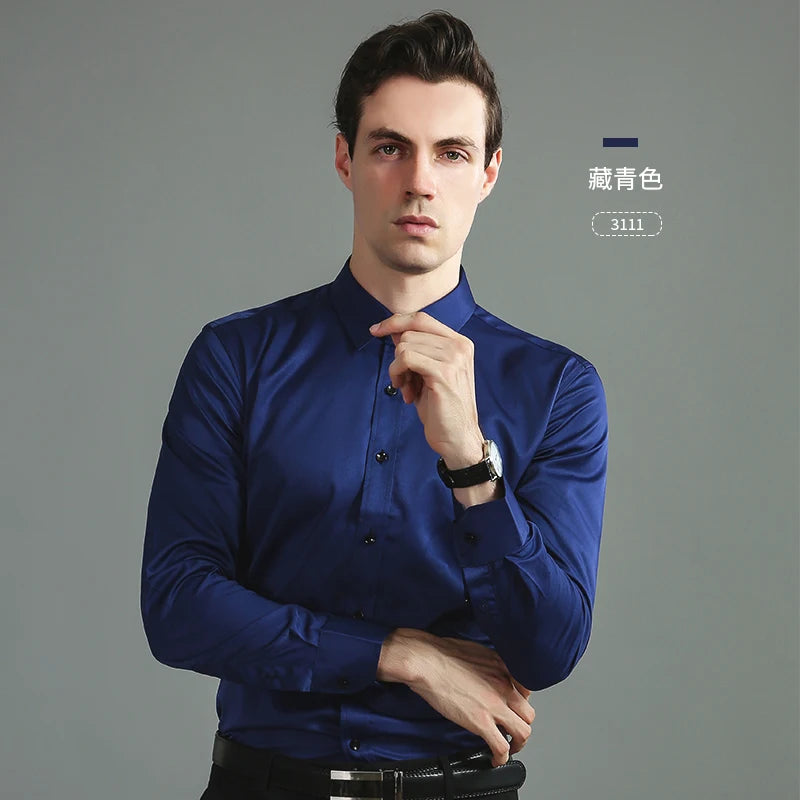 A slim-fit long sleeve shirt designed for social and business wear.Breathable fabric supports comfort across all seasons.Clean styling suits parties and formal casual settings.