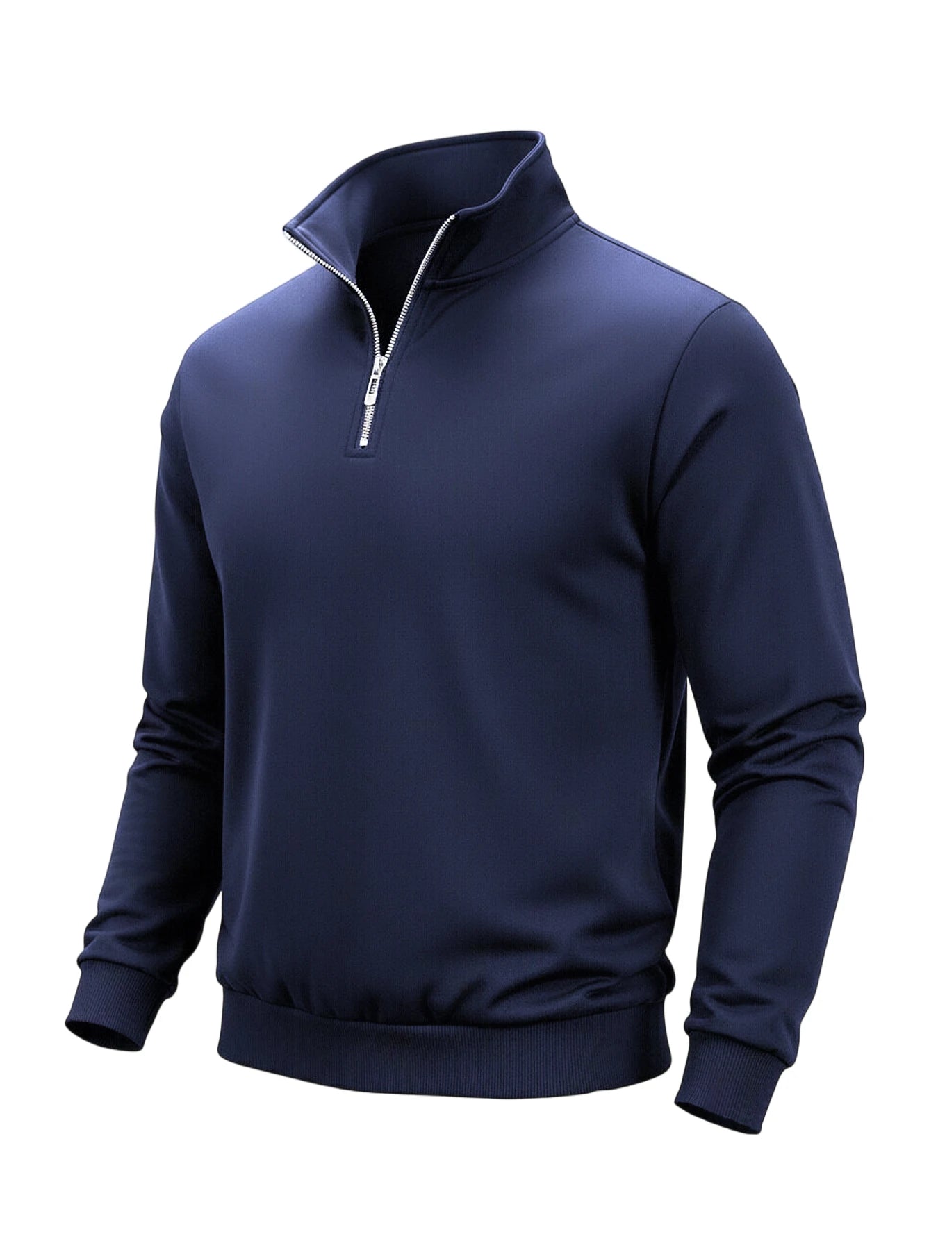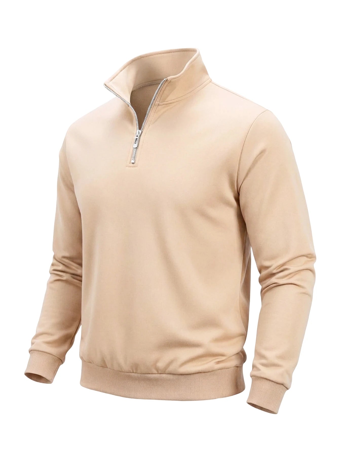 Designed for daily wear in spring and autumn.This solid color pullover features a modern half-zip turtleneck design.A versatile knit essential for outdoor and street styling.