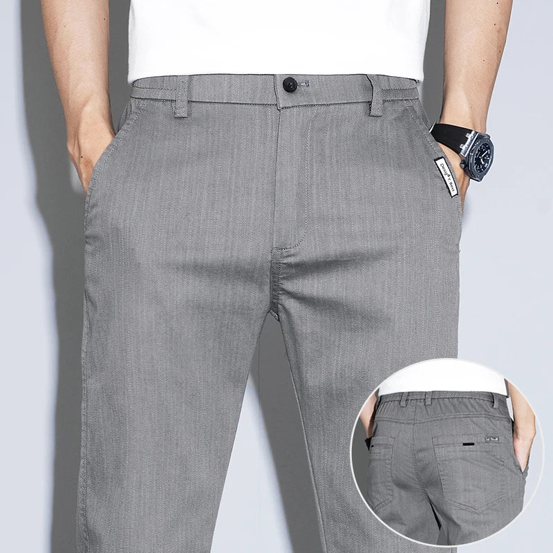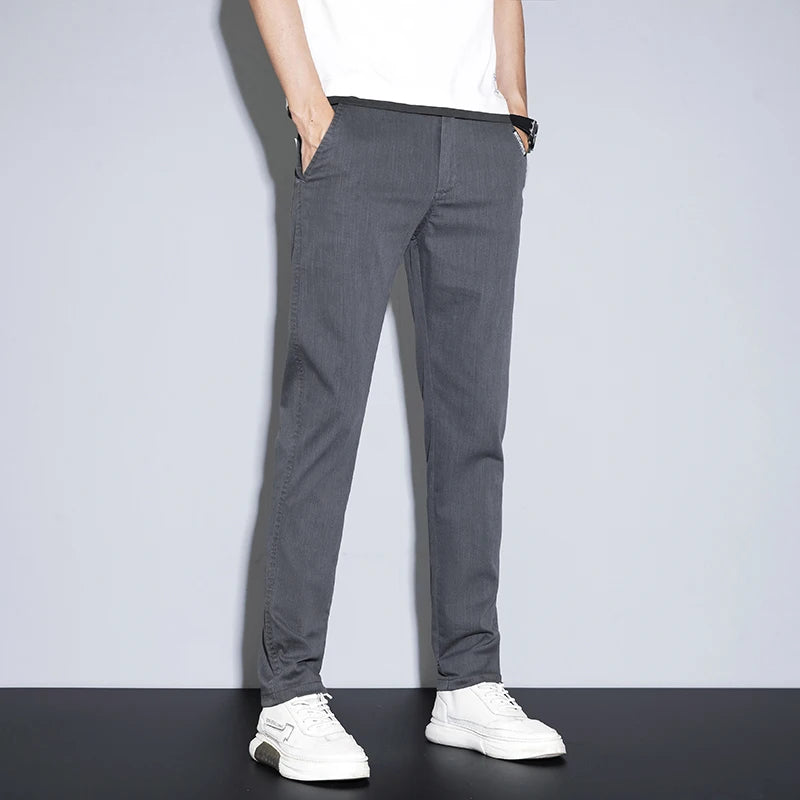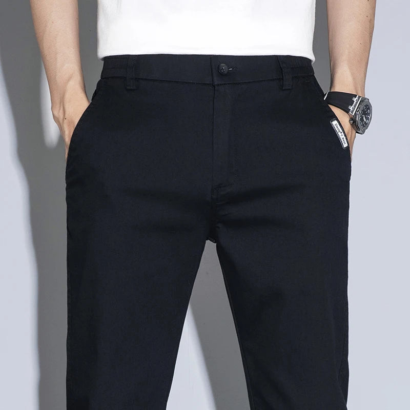 Designed for daily wear with a clean Korean-inspired business look.Lightweight stretch fabric delivers comfort with a slim straight profile.