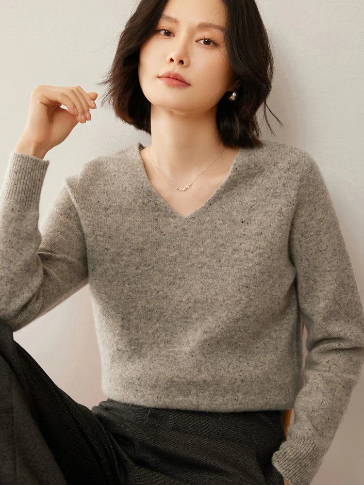 A soft knit pullover designed for autumn and winter comfort.Features a regular fit with a refined V-neck silhouette.