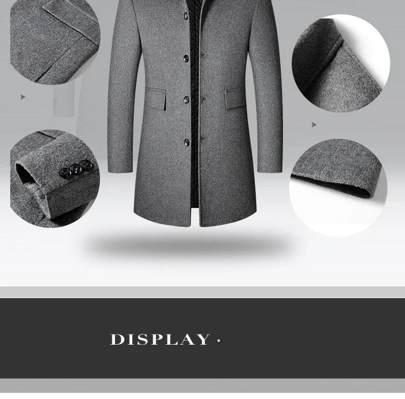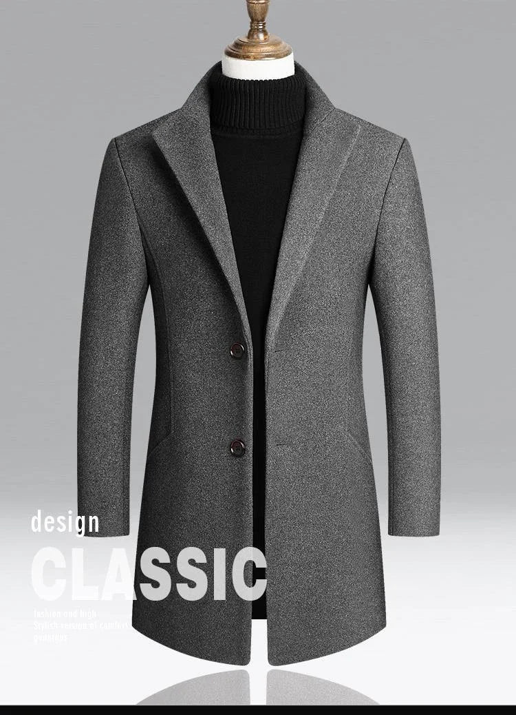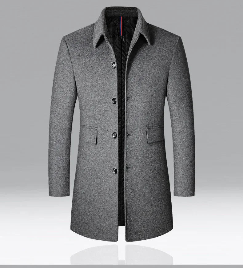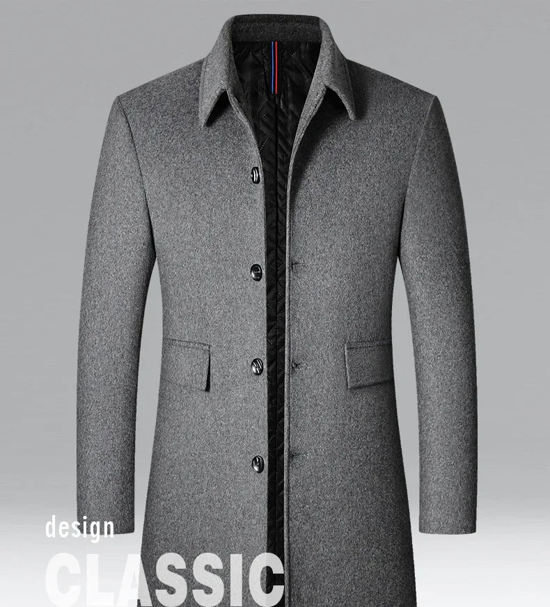 Tailored for business settings, this long trench coat delivers structured warmth for winter.Regular fit with a clean silhouette makes it ideal for formal and smart casual wear.Solid design ensures timeless versatility.