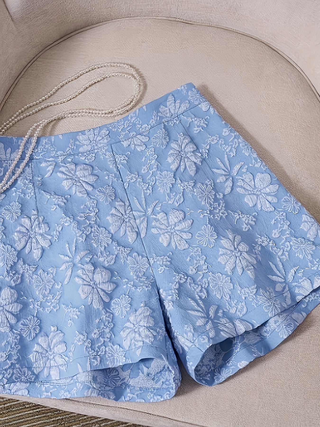 • Jacquard woven floral fabric• Elastic waist with zipper detail• Regular fit comfortable silhouette• Chic casual design• Non-sheer construction• Suitable for daily wear