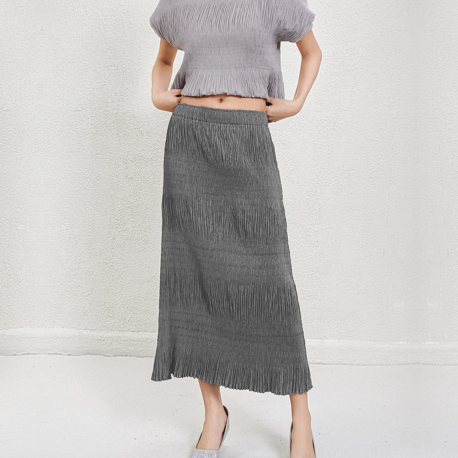 A lightweight long skirt designed for relaxed seasonal wear.Loose fit with an airy A-line shape for everyday comfort.