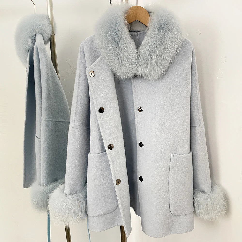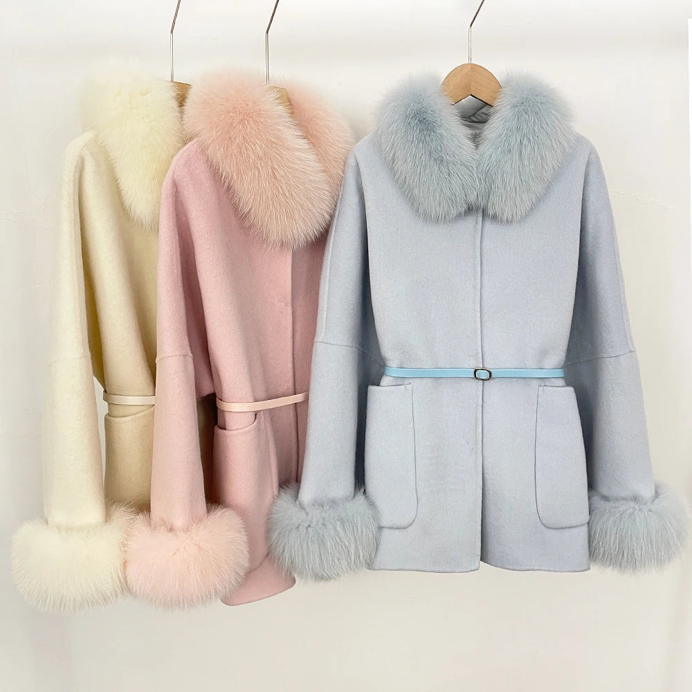 Premium wool fabric with real fur detailing