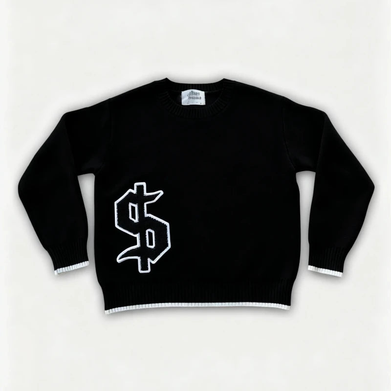Designed for casual street and daily commute wear in autumn and winter.This oversized pullover features bold embroidery with a gothic edge.A relaxed knit essential for expressive Y2K-inspired styling.